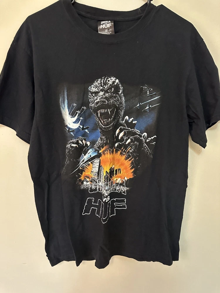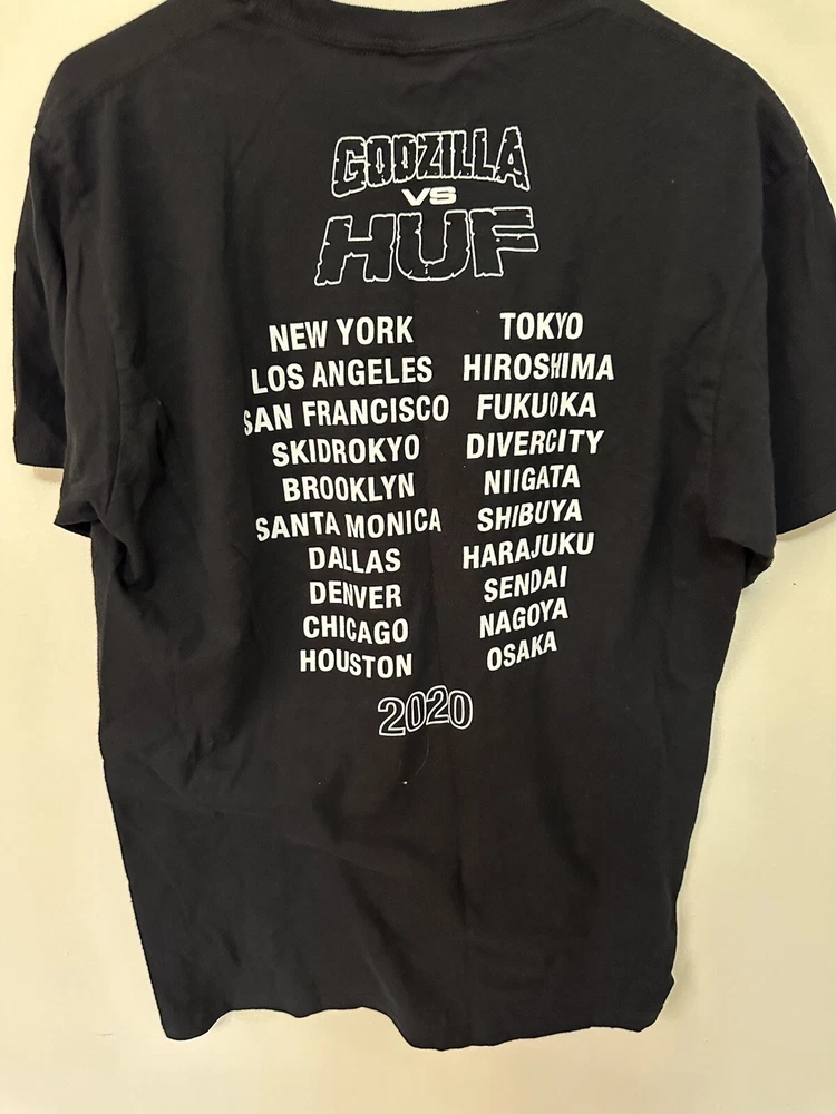Godzilla Vs HUF 2020 World Tour Dates Graphic T-Shirt Skateboarding Black . Condition is Pre-owned. Shipped with USPS Ground Advantage.