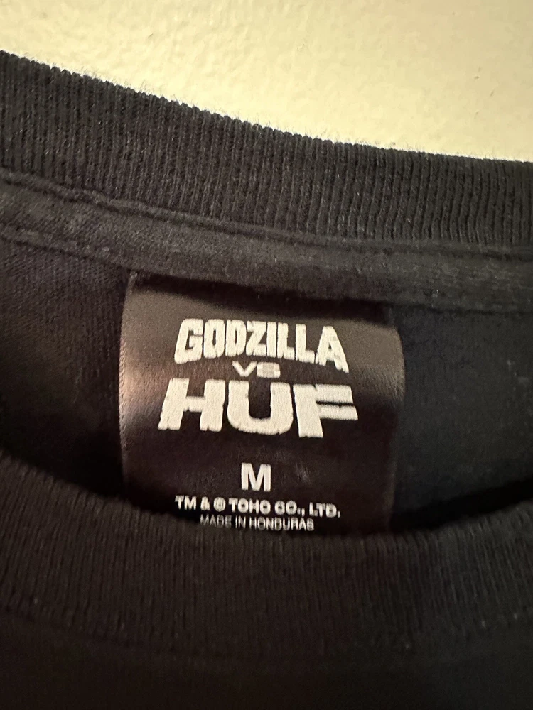 Godzilla Vs HUF 2020 World Tour Dates Graphic T-Shirt Skateboarding Black . Condition is Pre-owned. Shipped with USPS Ground Advantage....