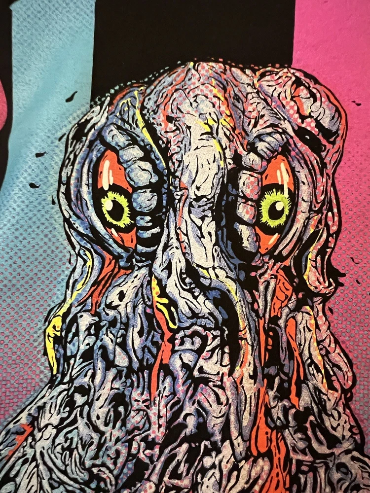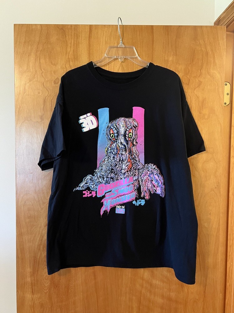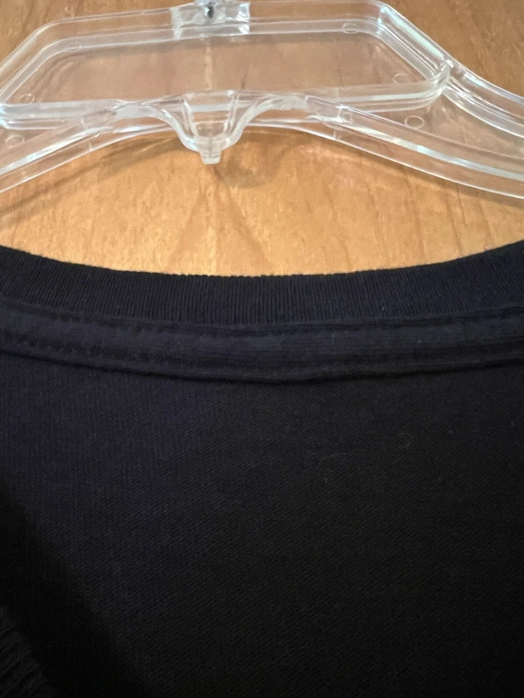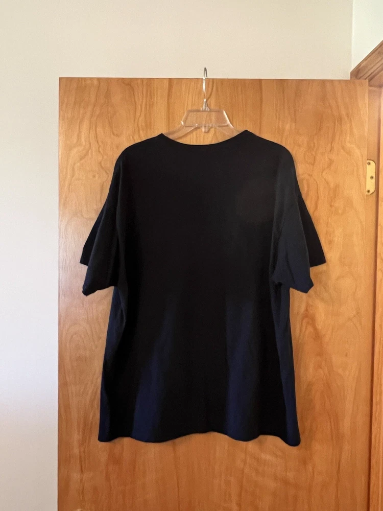 The graphics on this tee are really good. Bold and colorful! The tag is missing with fabric content and maker. Unsure if it is vintage or not. Estate sale find that has been freshly laundered with All Free & Clear Laundry Detergent. Air dried. This t-shirt could be unisex. Men’s or Women’s. Measurements Pit to Pit 23 inches Length 27 1/2 inches We are a dog friendly home.