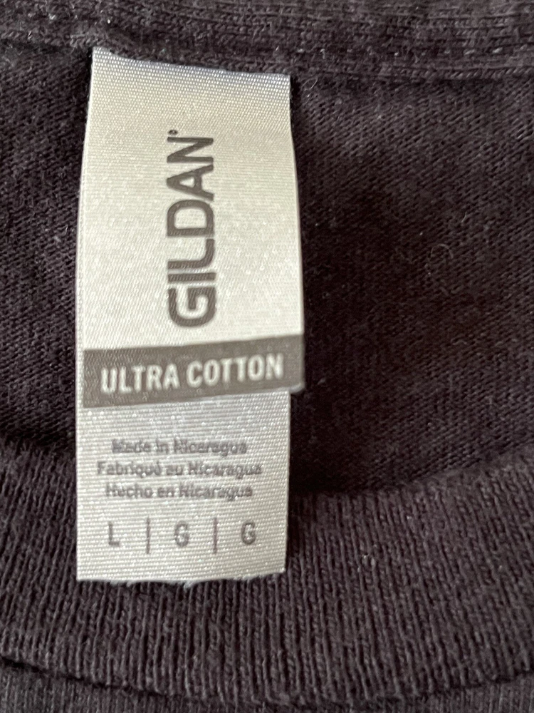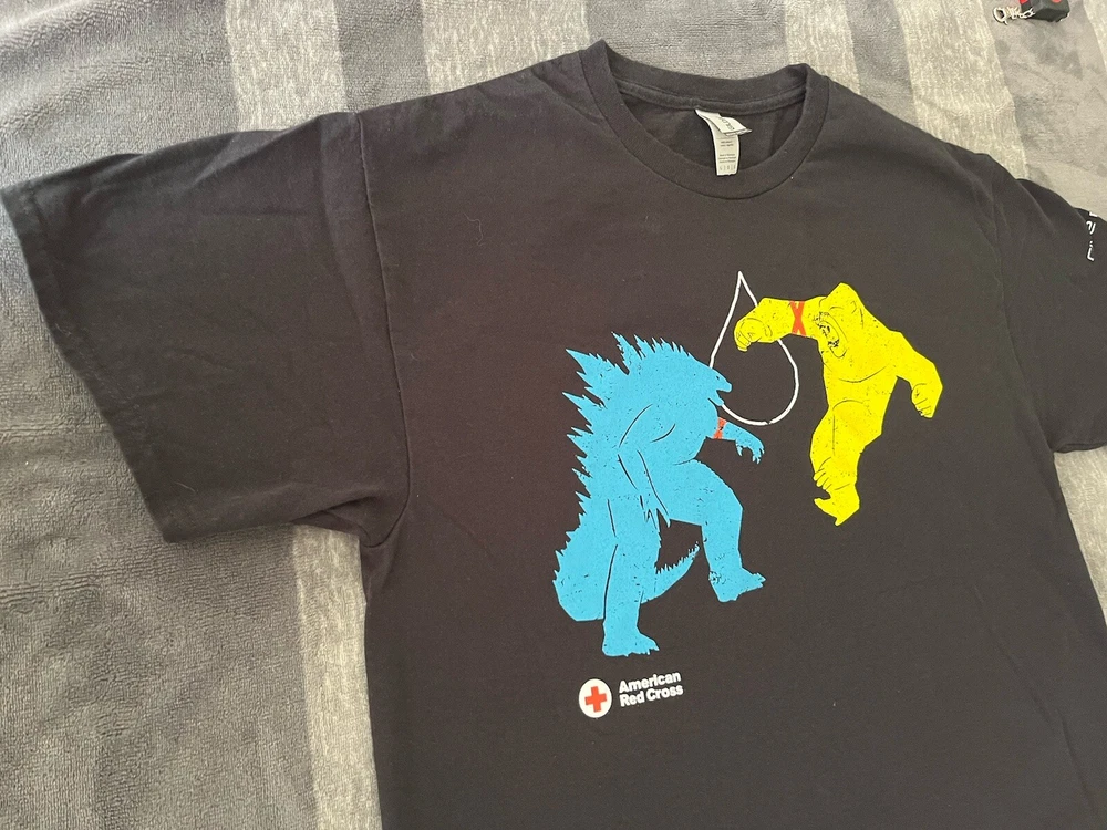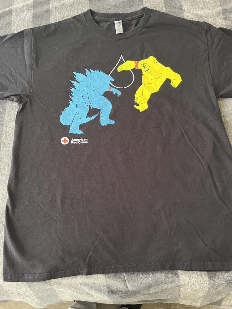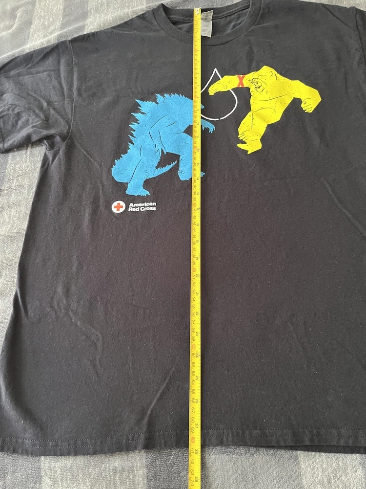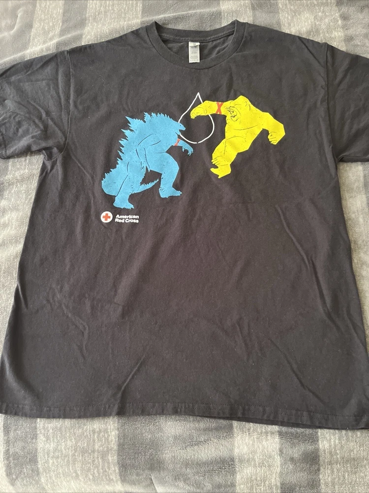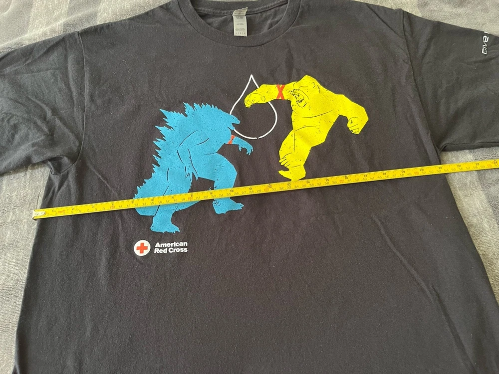 Introducing the Godzilla X King Kong The New Empire T-Shirt in black, size large. This shirt features a solid pattern and a crew neck neckline with short sleeves. It is made from 100% cotton knit fabric and is machine washable for easy care. The shirt has a regular fit and is part of the Gildan Ultra Cotton product line. This T-shirt is perfect for any fan of the colorful Godzilla X King Kong character family. It can be worn in any season, whether it be winter, summer or spring. The shirt is brand new and was manufactured in Nicaragua.