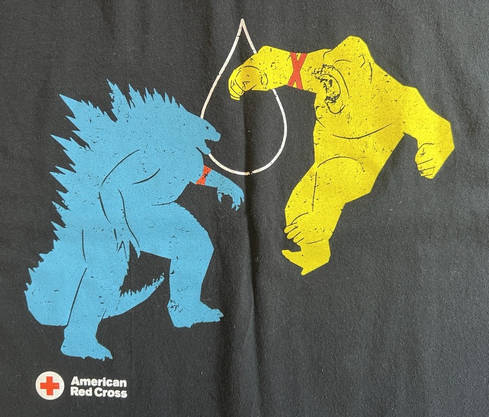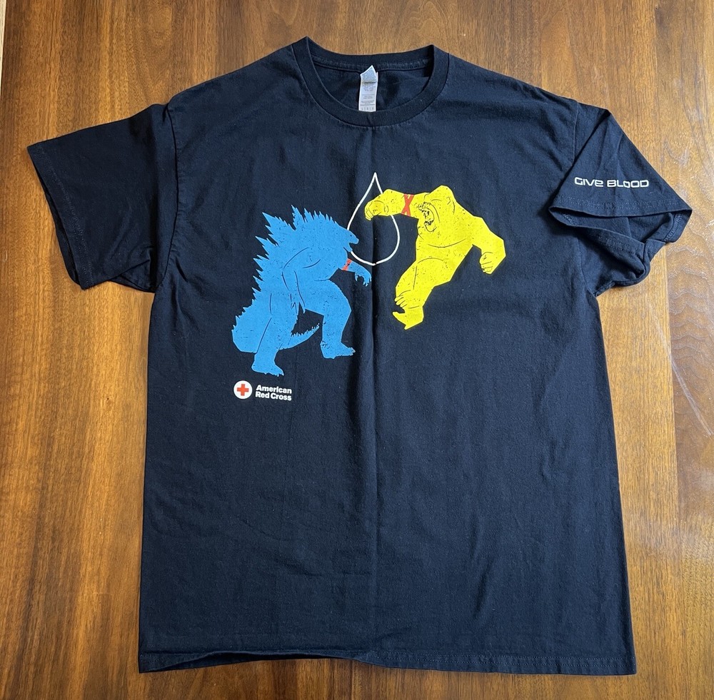 Exclusive promotional shirt for Godzilla x Kong: The New Empire given out by the Red Cross to people who donated blood, platelets or plasma between March 25th - April 7th of 2024. Size: Large This is a great limited shirt for any movie buff or to add to any Godzilla or King Kong collection! Condition and graphics as shown. Please let me know if you have any questions!