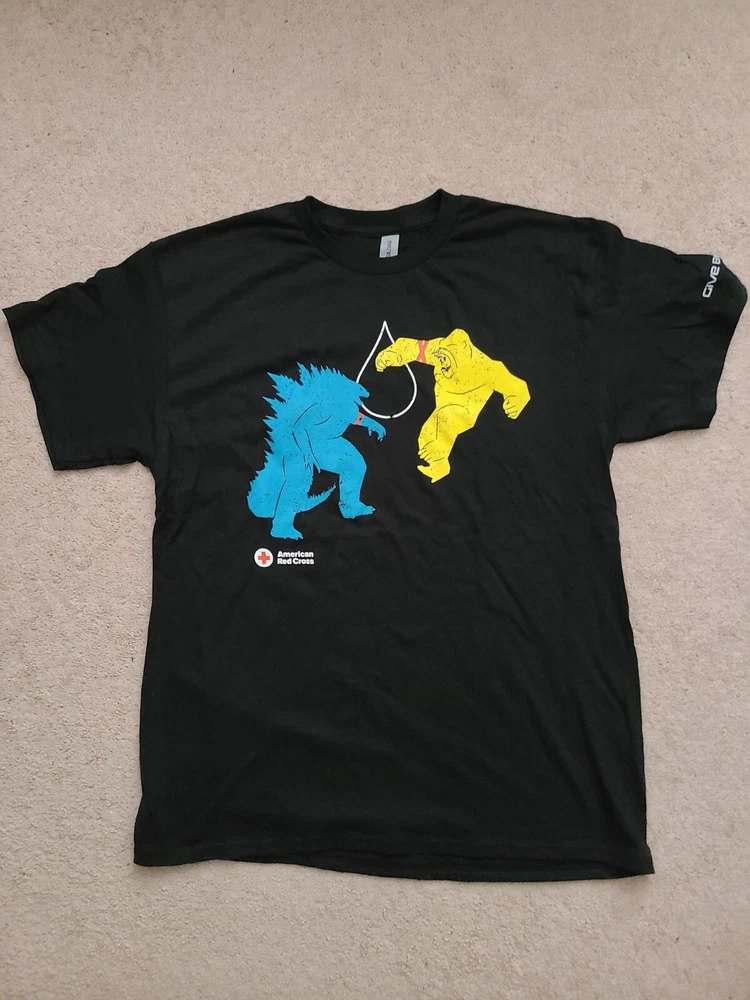 New and never worn Godzilla x Kong The New Empire Red Cross Donor Shirt Gildan, Thick cotton shirt, good quality. Size: 2XL Collectible