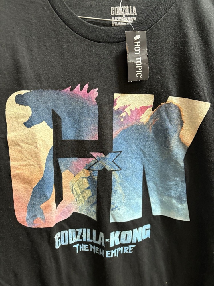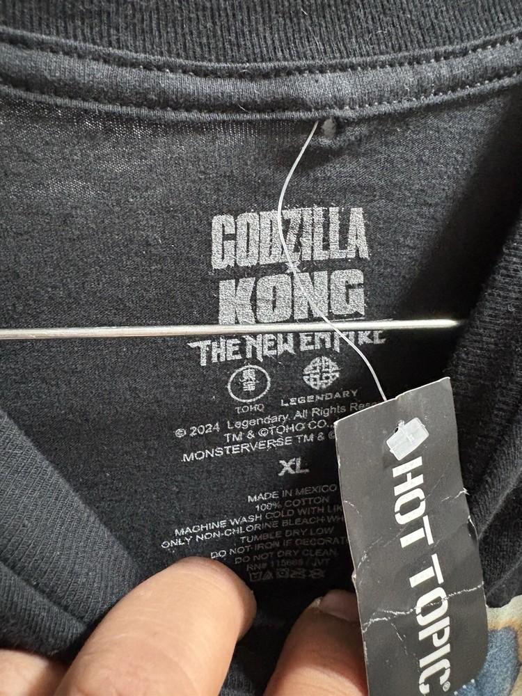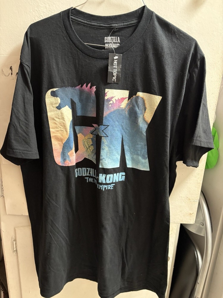 This Godzilla X Kong The New Empire T-Shirt is a must-have for any fan of the iconic movie monsters. The shirt is made of 100% cotton and is machine washable for easy care. It features a white color design with short sleeves and a regular fit, making it perfect for both men and women in size XL. The shirt was manufactured in the United States in the 2020s and is not considered vintage. The Legendary brand was responsible for the shirt's creation and it is a great addition to any movie-themed wardrobe. The shirt has a tiny hole on the back near the neck side.