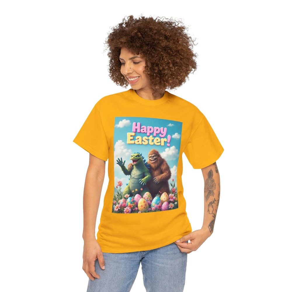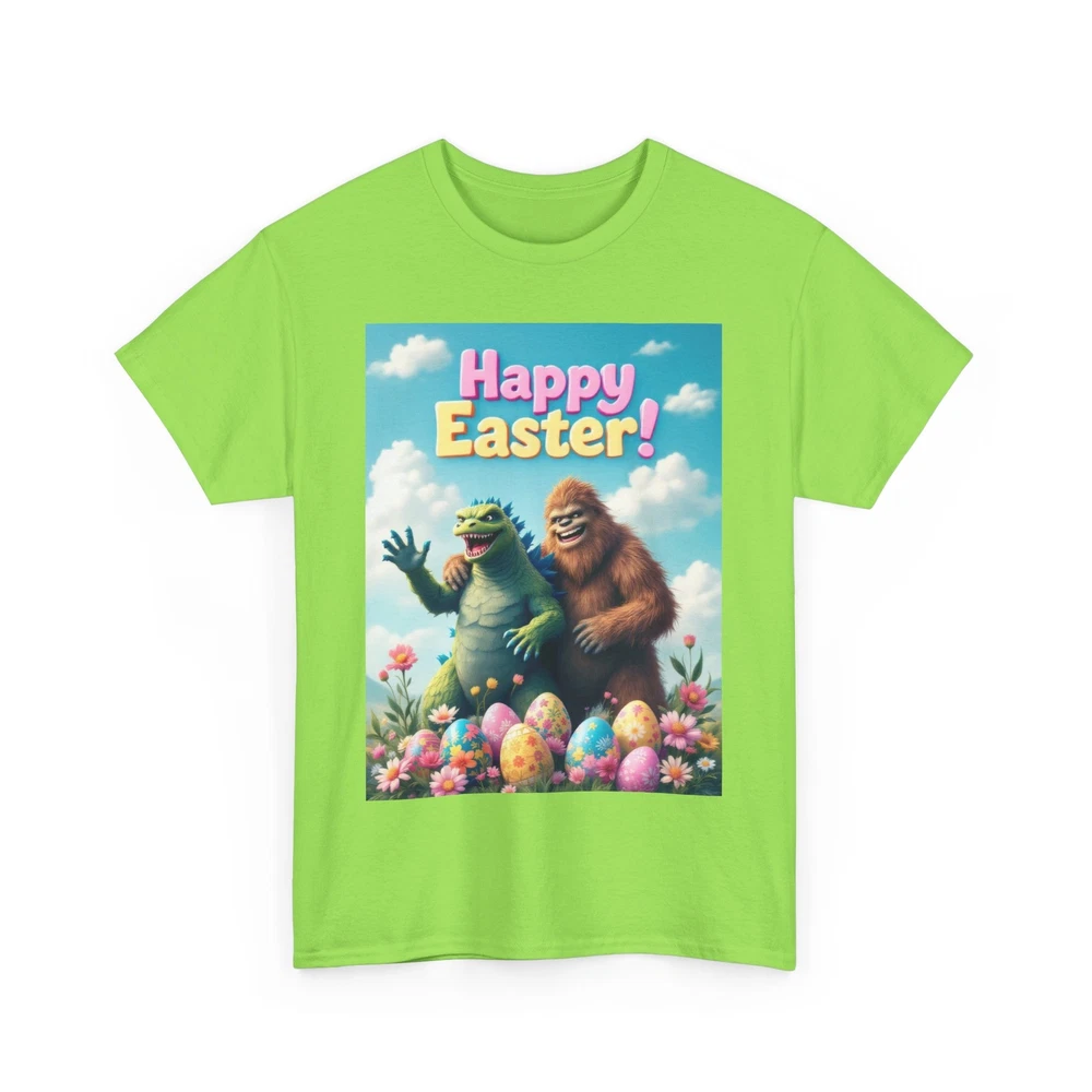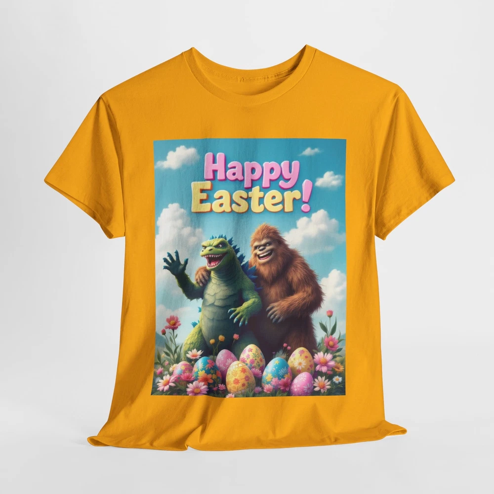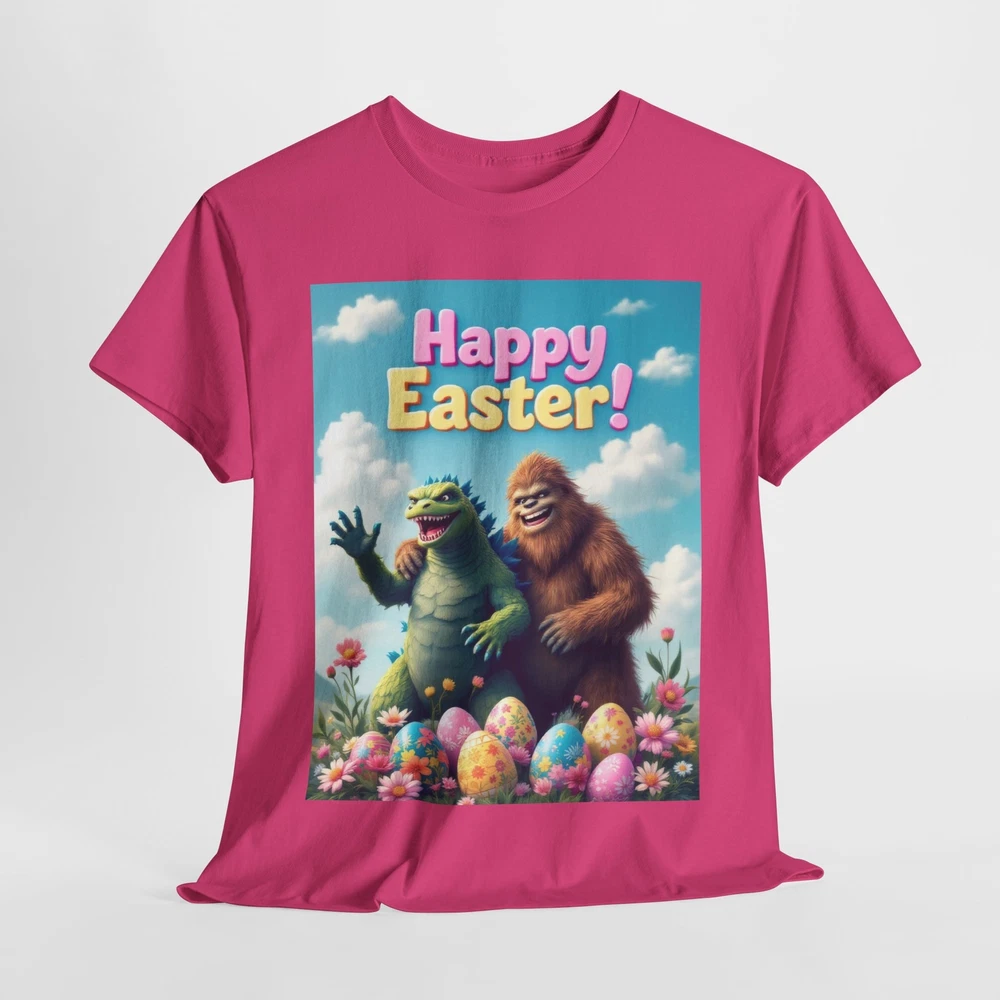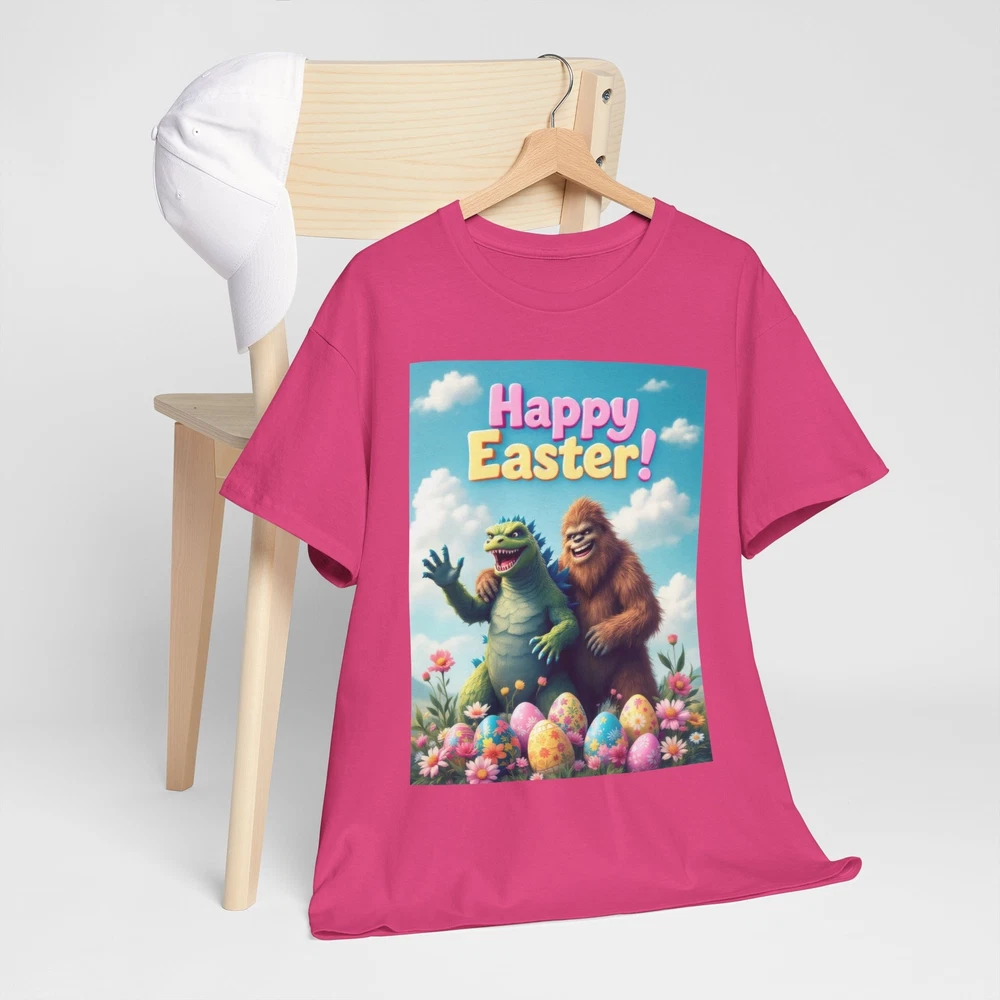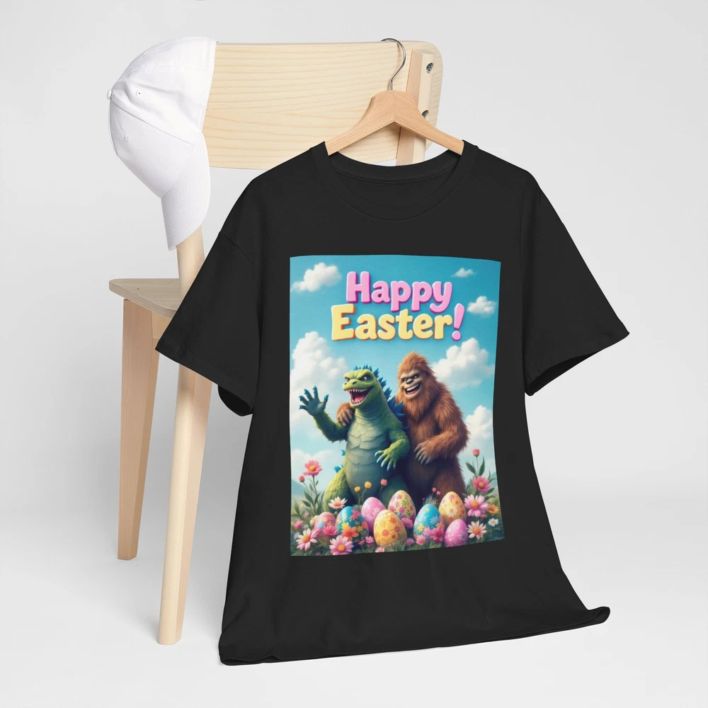 Get ready to celebrate Easter in style with our Godzilla and Bigfoot Happy Easter Funny T-Shirt! This unique graphic tee features a whimsical design that combines two iconic figures in a hilarious Easter setting. Made from 100% premium cotton, this shirt is ultra-soft, breathable, and perfect for those festive gatherings with friends and family. Available in various sizes, you can find the perfect fit for anyone who loves a good laugh or a great story. Not only is this shirt a fun addition to your holiday wardrobe, but it also serves as a fantastic conversation starter! Whether you're hunting for Easter eggs or just hanging out with like-minded enthusiasts, this funny t-shirt is sure to turn heads and spark laughter. The vibrant colors and detailed graphics ensure that you stand out during Easter celebrations and beyond. Caring for your Godzilla and Bigfoot Happy Easter T-Shirt is easy! Simply machine wash cold and tumble dry low, and it will maintain its quality for many Easters to come. Ideal as a gift for friends, family, or any fan of quirky humor, this t-shirt embodies both fun and authenticity, delivering handcrafted quality that makes it a delightful present or personal treat. Product features - Shoulder tape for added stability - Ribbed knit collar for elasticity - Made from strong and smooth fabric perfect for printing - Classic fit for a comfy wear - Ethically grown and harvested US cotton Care instructions - Machine wash: warm (max 40C or 105F) - Non-chlorine: bleach as needed - Tumble dry: medium - Do not iron - Do not dryclean