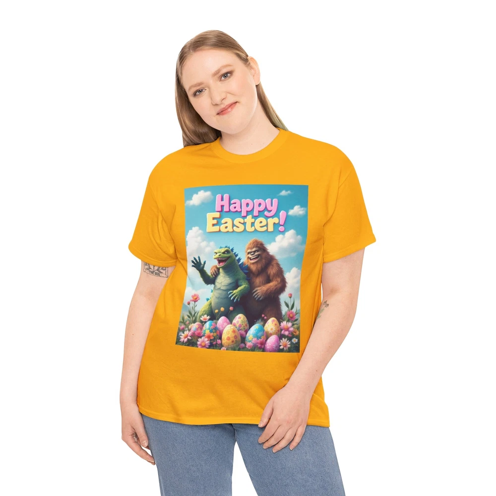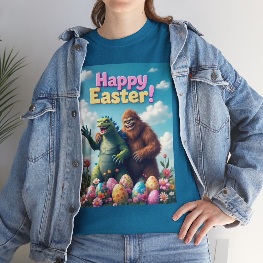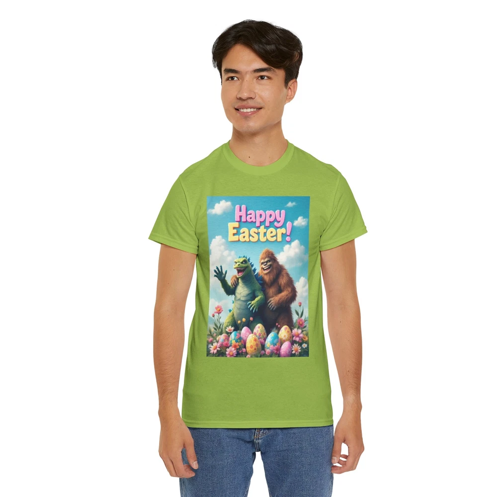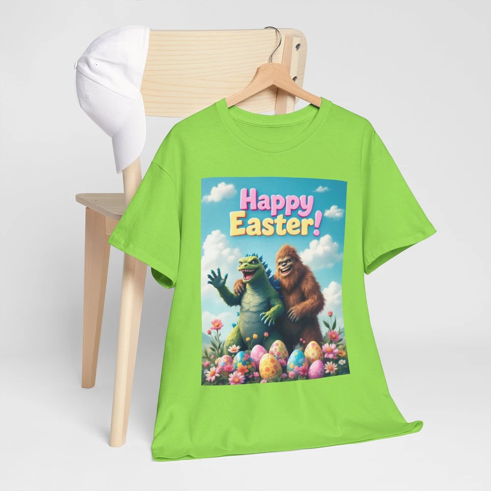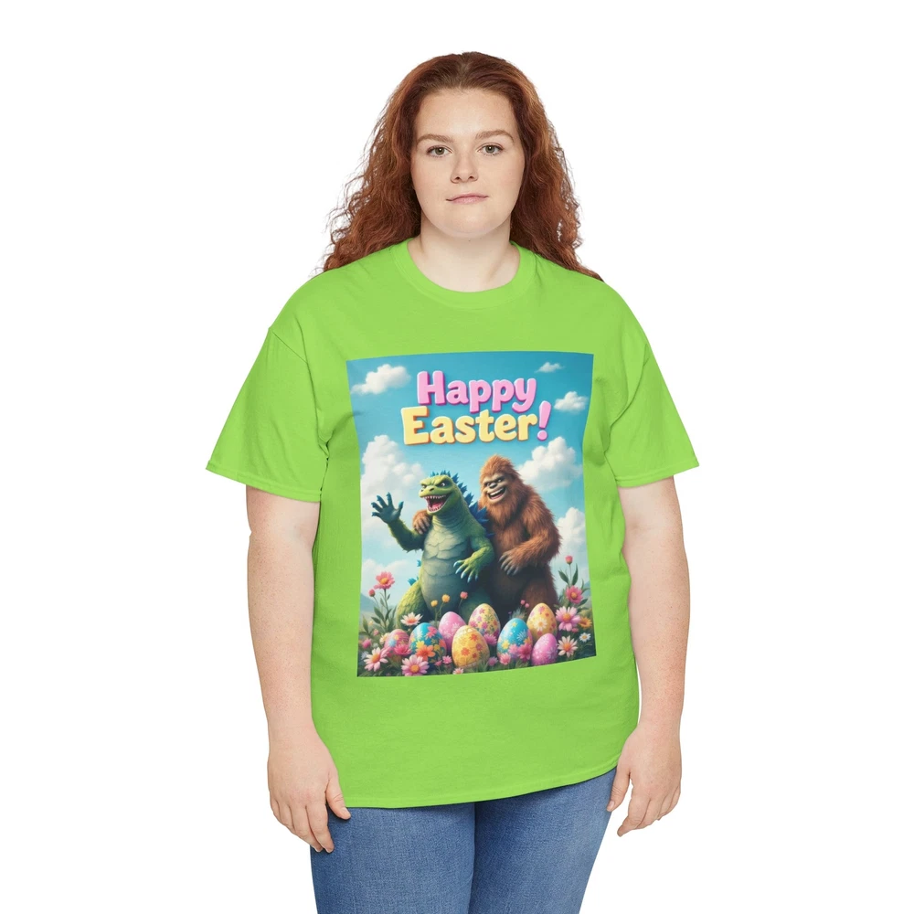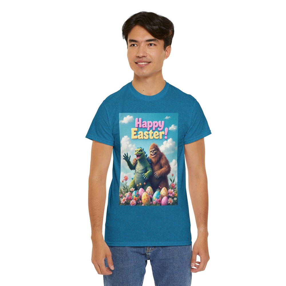 Get ready to celebrate Easter in style with our Godzilla and Bigfoot Happy Easter Funny T-Shirt! This unique graphic tee features a whimsical design that combines two iconic figures in a hilarious Easter setting. Made from 100% premium cotton, this shirt is ultra-soft, breathable, and perfect for those festive gatherings with friends and family. Available in various sizes, you can find the perfect fit for anyone who loves a good laugh or a great story. Not only is this shirt a fun addition to your holiday wardrobe, but it also serves as a fantastic conversation starter! Whether you're hunting for Easter eggs or just hanging out with like-minded enthusiasts, this funny t-shirt is sure to turn heads and spark laughter. The vibrant colors and detailed graphics ensure that you stand out during Easter celebrations and beyond. Caring for your Godzilla and Bigfoot Happy Easter T-Shirt is easy! Simply machine wash cold and tumble dry low, and it will maintain its quality for many Easters to come. Ideal as a gift for friends, family, or any fan of quirky humor, this t-shirt embodies both fun and authenticity, delivering handcrafted quality that makes it a delightful present or personal treat. Product features - Shoulder tape for added stability - Ribbed knit collar for elasticity - Made from strong and smooth fabric perfect for printing - Classic fit for a comfy wear - Ethically grown and harvested US cotton Care instructions - Machine wash: warm (max 40C or 105F) - Non-chlorine: bleach as needed - Tumble dry: medium - Do not iron - Do not dryclean