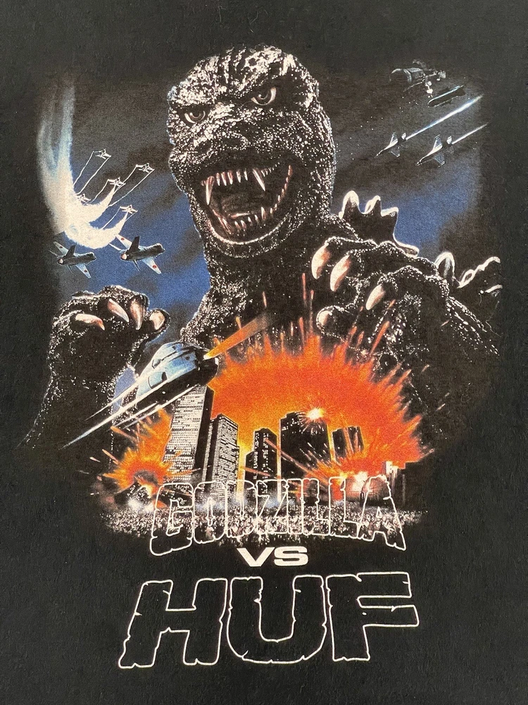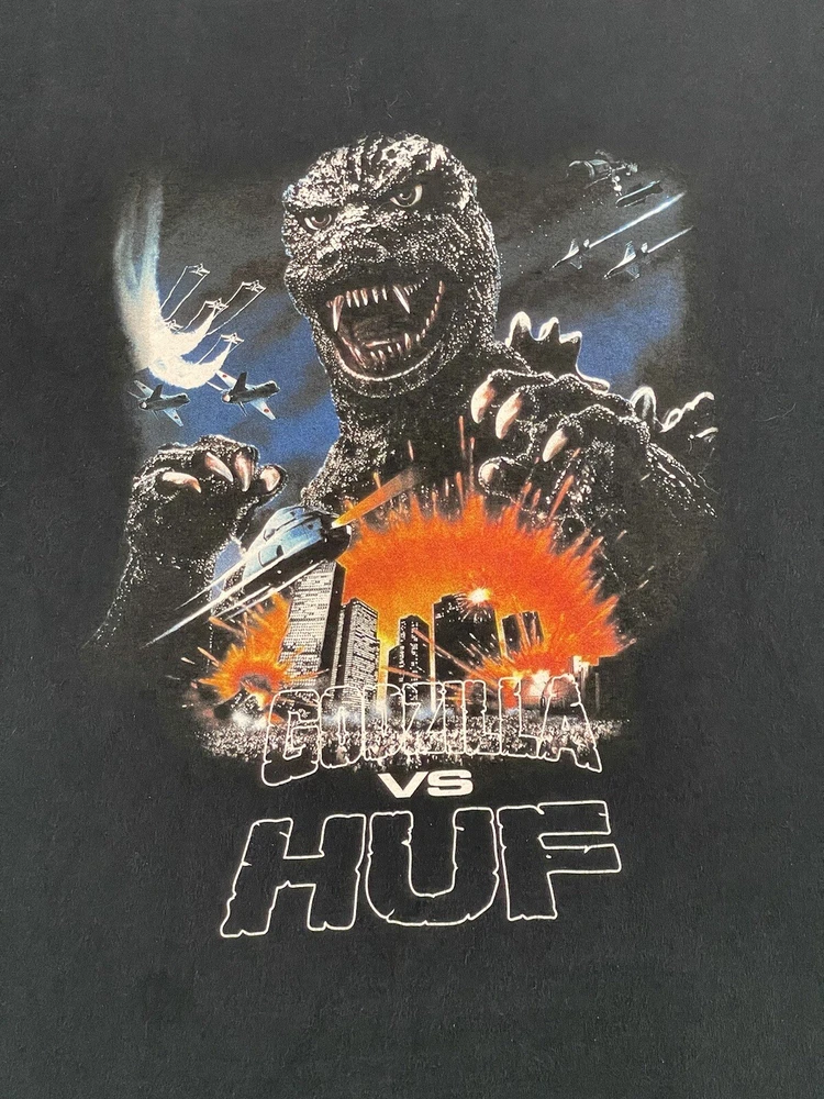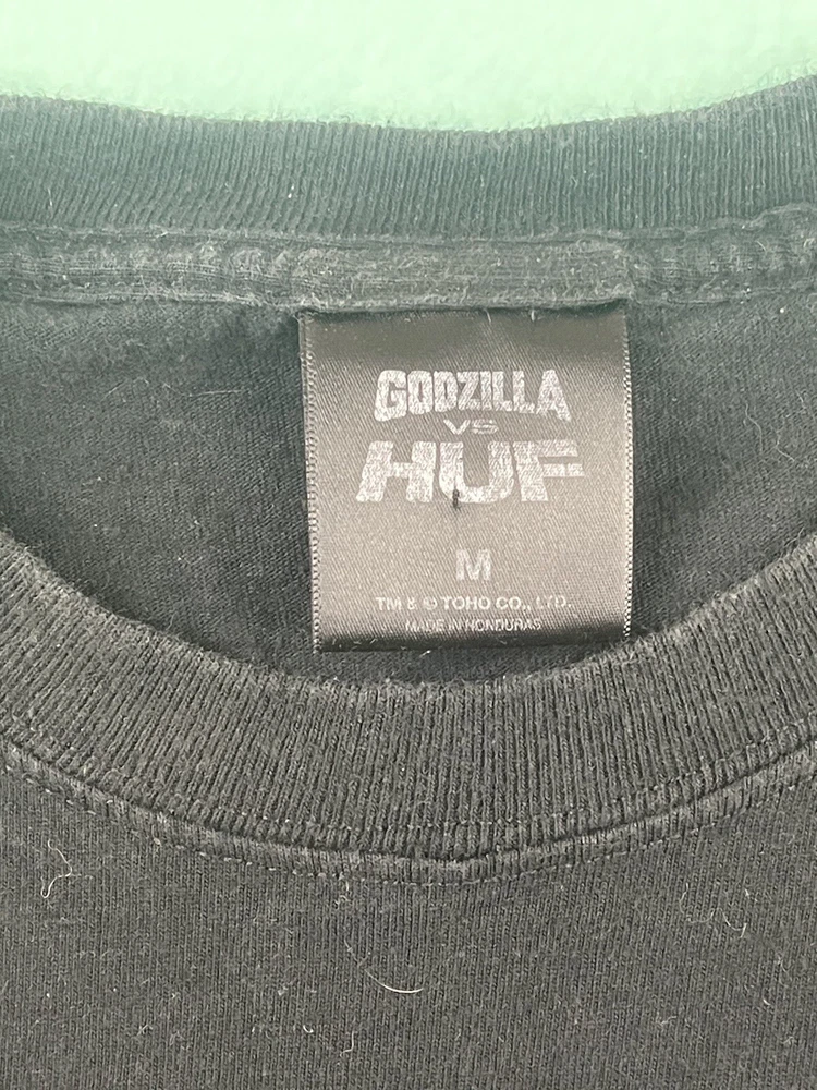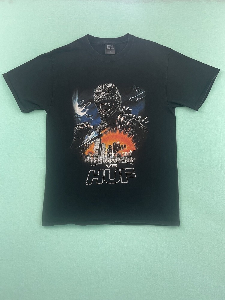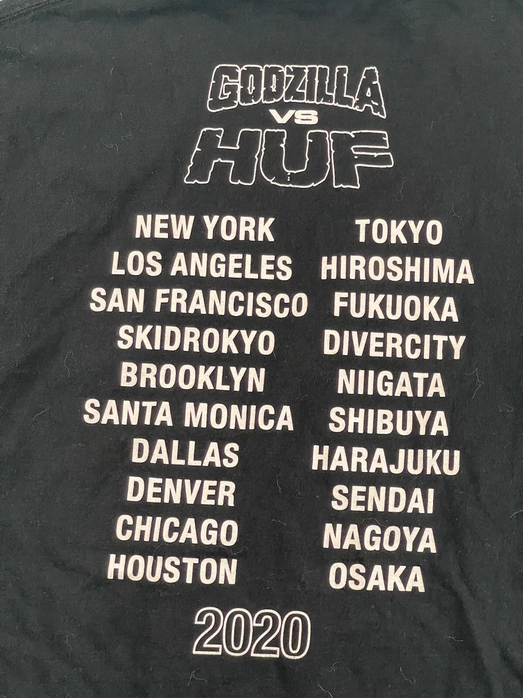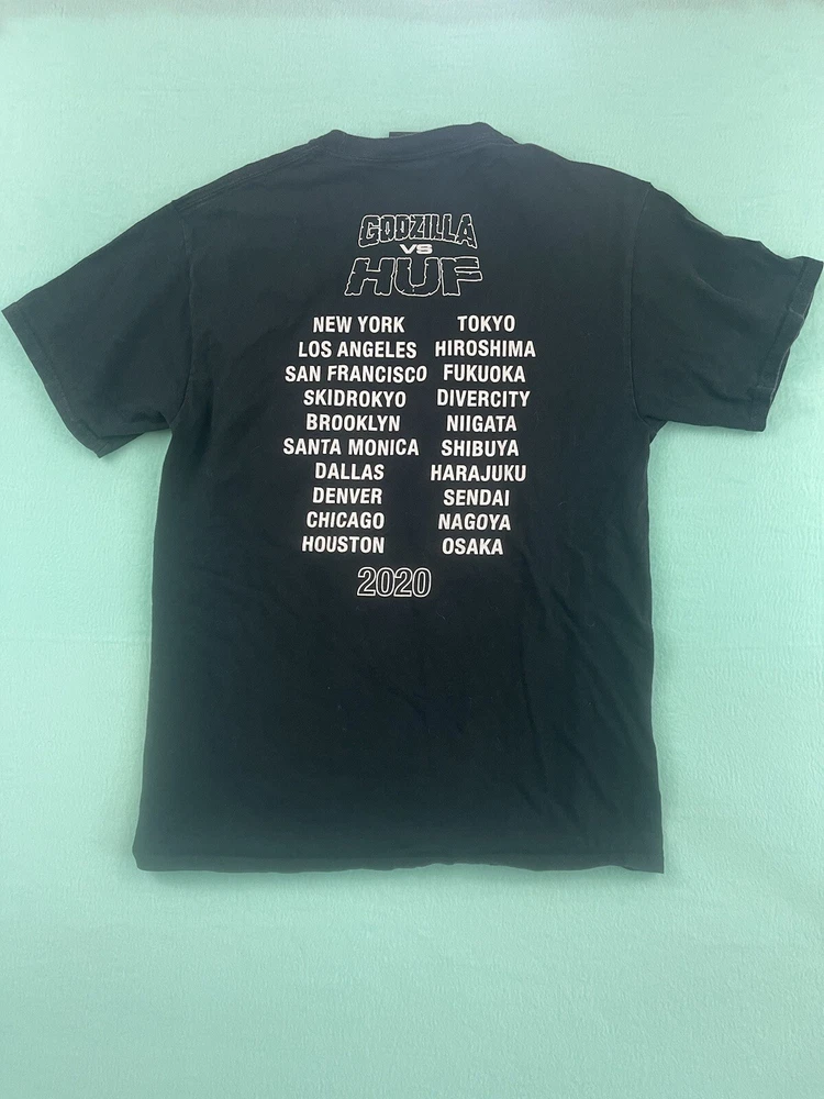 Get ready to battle with this Godzilla vs HUF 2020 World Tour Black Size Large M Graphic Kaiju T-Shirt. Featuring the iconic TOHO brand, this regular-sized tee is perfect for men who love to show off their fandom. The shirt comes in a sleek black color and is made from high-quality materials that will last for years to come. This T-shirt is a must-have for any fan of the Godzilla franchise. The graphic design showcases the famous Kaiju in a battle-ready pose, making it a great addition to any collection. Whether you're wearing it to a concert or just out and about, this tee is sure to turn heads. Don't miss out on the chance to own this one-of-a-kind piece of memorabilia.