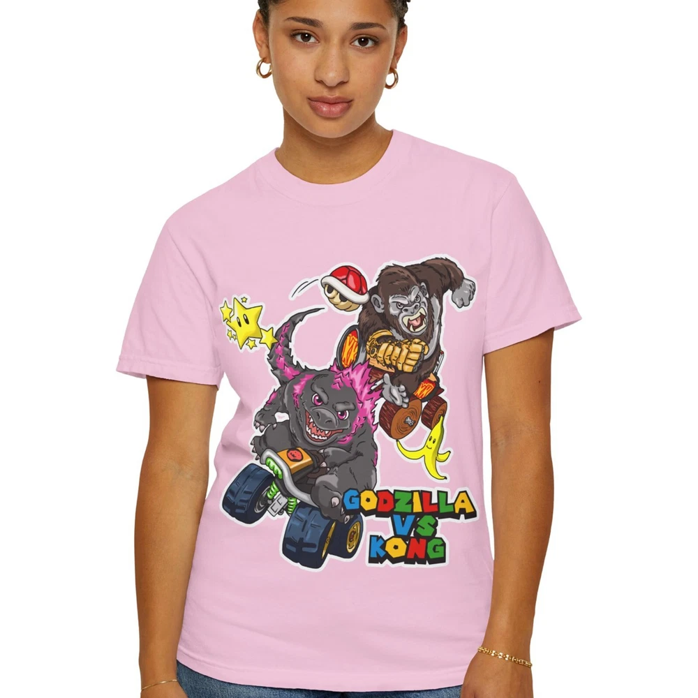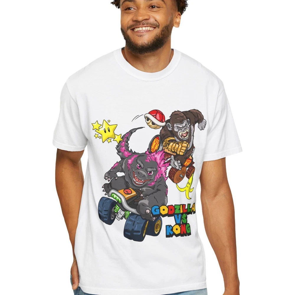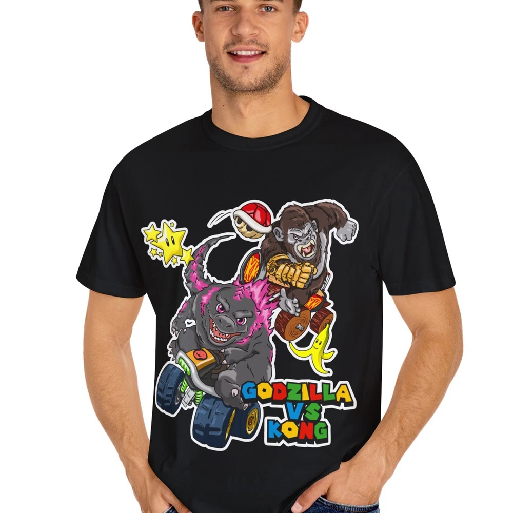 Godzilla & King Kong settle the battle for Hollow Earth in a game of Mario Kart! Featuring my original illustration of Godzilla and King Kong inspired by a scene from their new movie. Stay comfortable and stylish with these ultra soft 100% cotton t-shirts! Printed using DTG technology for bright, long-lasting designs! Unisex sizes, please check size chart for measurements. More Hip Hop Art, Posters, Phone Cases, and Clothing available in my store! Thanks for shopping with us!