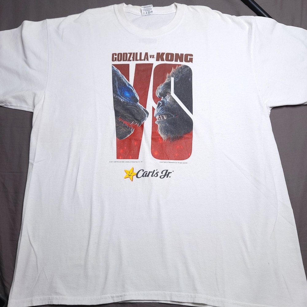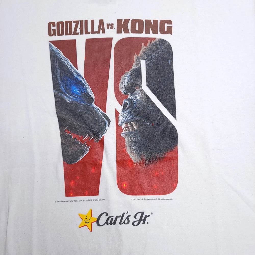 Godzilla vs Kong Carl's Jr Action Movie Promo Shirt XL Licensed and dated 2021 Light marks, wash before wearing