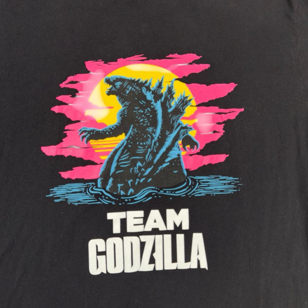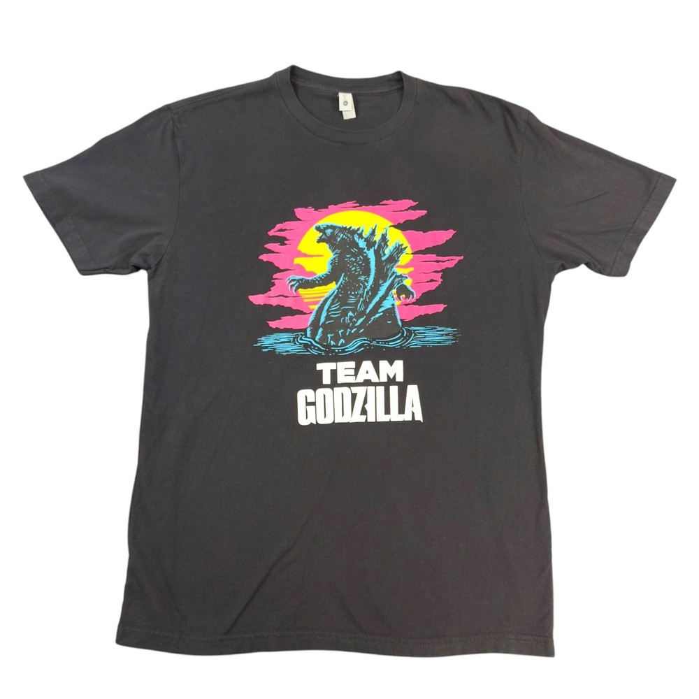 Team Godzilla T-Shirt Large Black Graphic Tee 2021 Movie Promo Description: Show your loyalty to the King of the Monsters with this officially licensed Team Godzilla T-shirt from the 2021 Godzilla vs. Kong movie. Features bold neon graphics of Godzilla against a sunset backdrop, with “Team Godzilla” text below. Measurements: Length: 28" Chest: 42" Shoulders: 19" Features: Size: Large Made by Next Level Apparel 100% Cotton Made in Honduras Double-sided design with back neck print Promo shirt from 2021 film release Perfect for fans of Godzilla, movie buffs, or collectors of limited promo apparel.