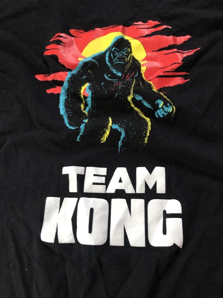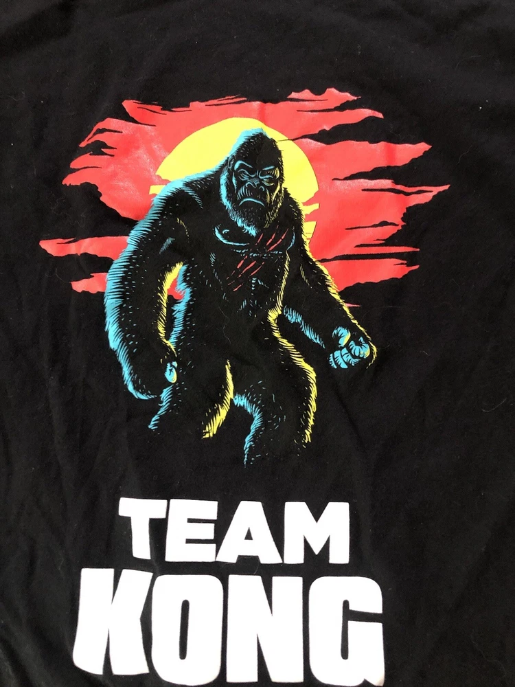 Godzilla vs king kong promotional t shirt team kong sz L Theater Worker Shirt ^^.