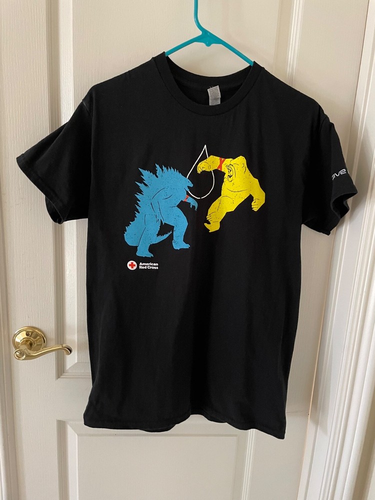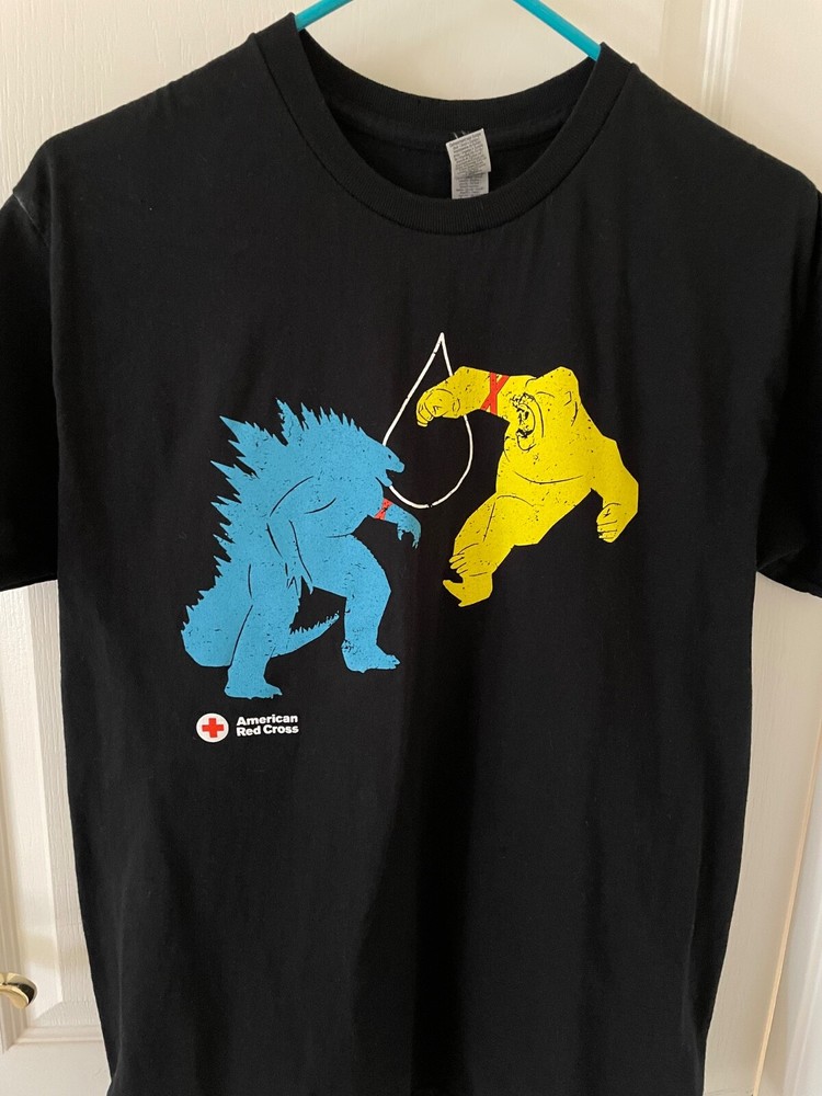 smoke, pet and odor free pictures add to description From the movie The New Empire Godzilla X Kong 2024 TM Godzilla x Kong Movie American Red Cross T Shirt Medium Blood Donation 2024 short sleeves larger graphic on front measurements are approx. laying flat underarm to underarm 19" back of neck to hem 28" Machine wash inside out, tumble dry low. do not iron email questions prior to bidding. Quick careful shipping with tracking the day you pay. Thank you no returns