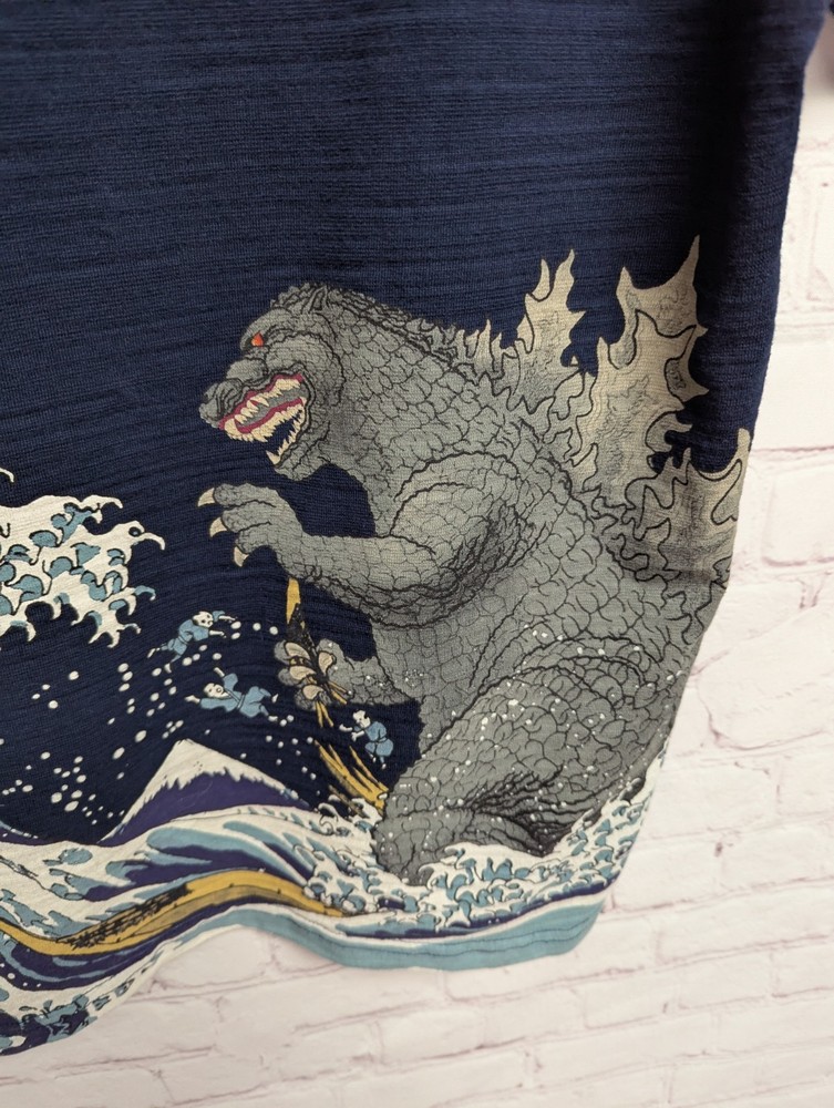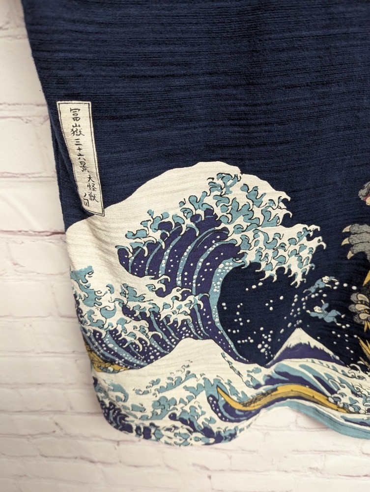 Godzilla x Ukiyoe Discharge Navy Blue T Shirt Great Waves Unisex S/M NWOT top is laser labeled as a medium. Would fit as a women's medium or men's small. **Please refer to pictures for dimensions. **Smoke free home. *Check out my other listings to bundle and save you $$. **Please don’t hesitate to ask if you have questions. **HAPPY SHOPPING!! ❤️