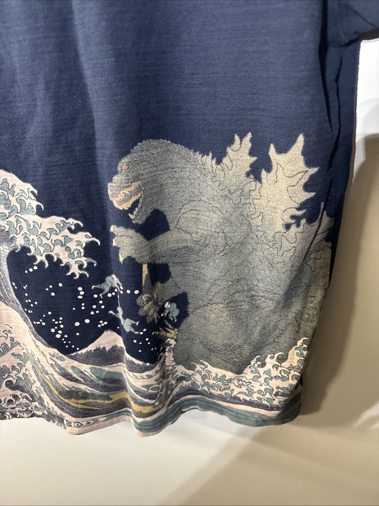 Love this vintage-style Godzilla tee! The ukiyoe wave design is stunning, and the navy blue color looks sharp. Super soft fabric, fits just right—super comfy for everyday wear. Perfect for fans who want a unique, stylish twist on classic kaiju art. A definite conversation starter!