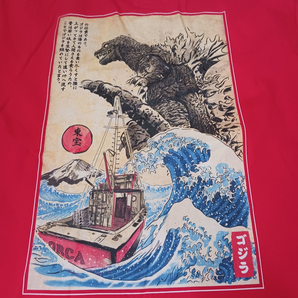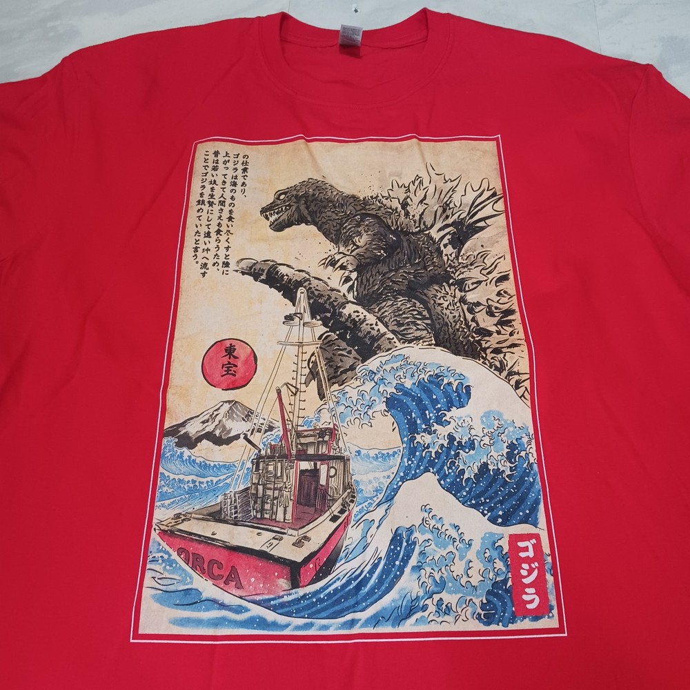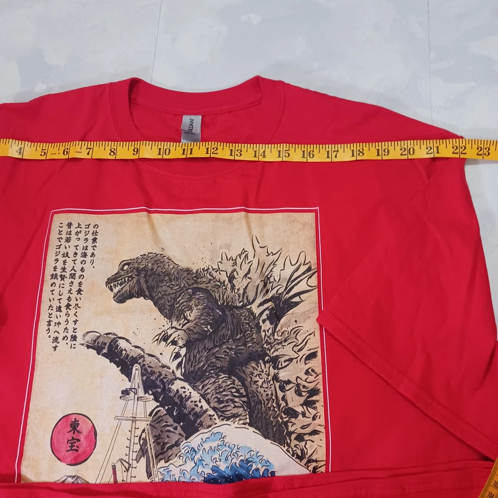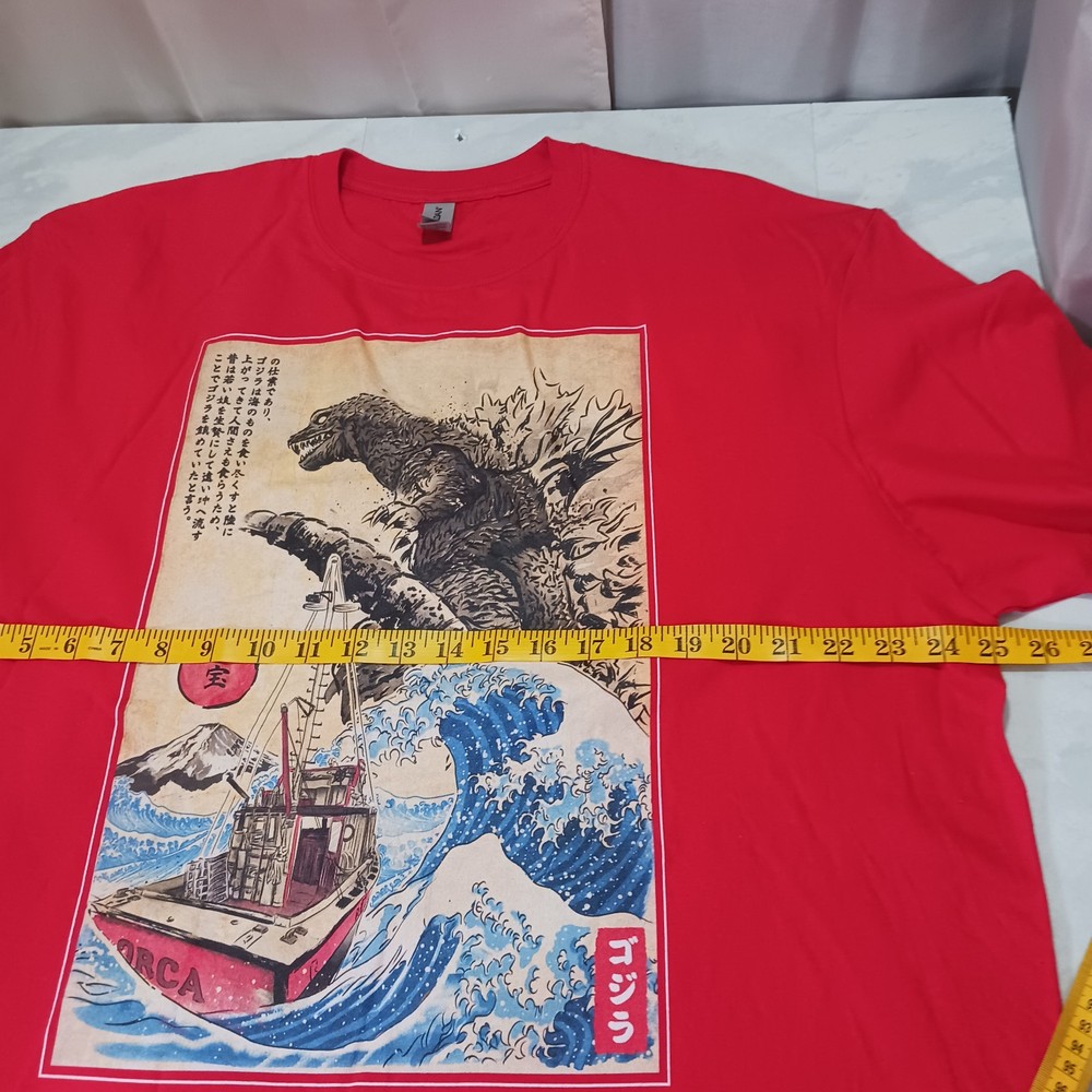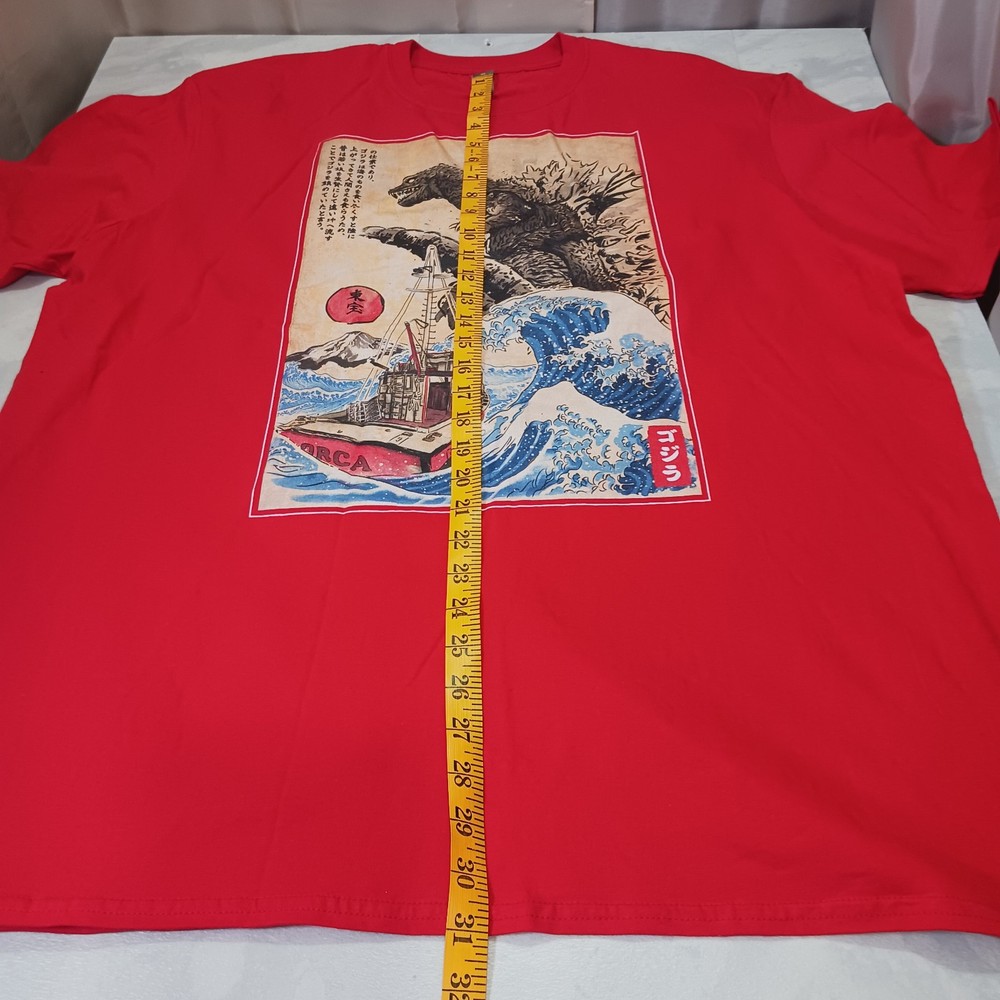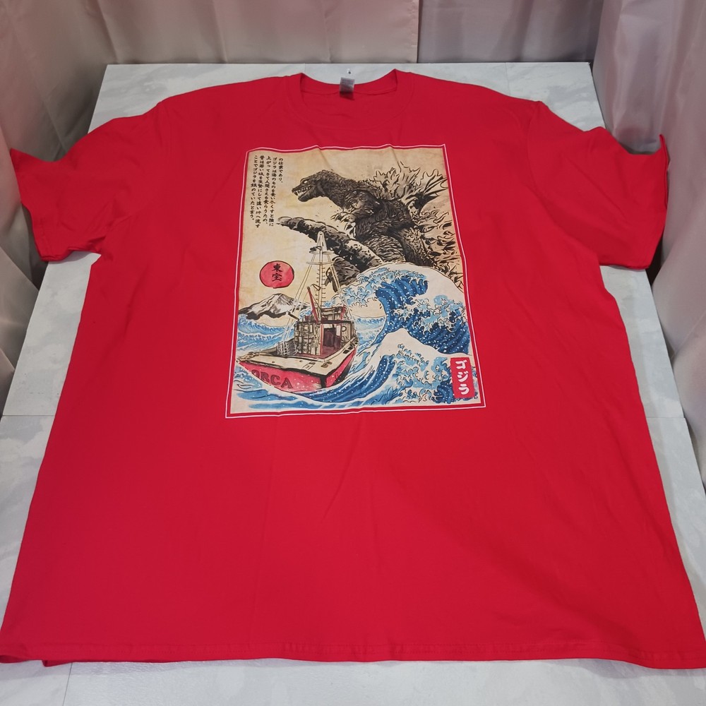 Pre-owned Men's Gojira Godzilla Kaiju ORCA Pop Culture Red Short-Sleeve T-Shirt Graphic Print. Size: Men's Size 2X-Large, Please see pictures for detailed measurements. Condition: This item is in good condition with no visible rips or stains