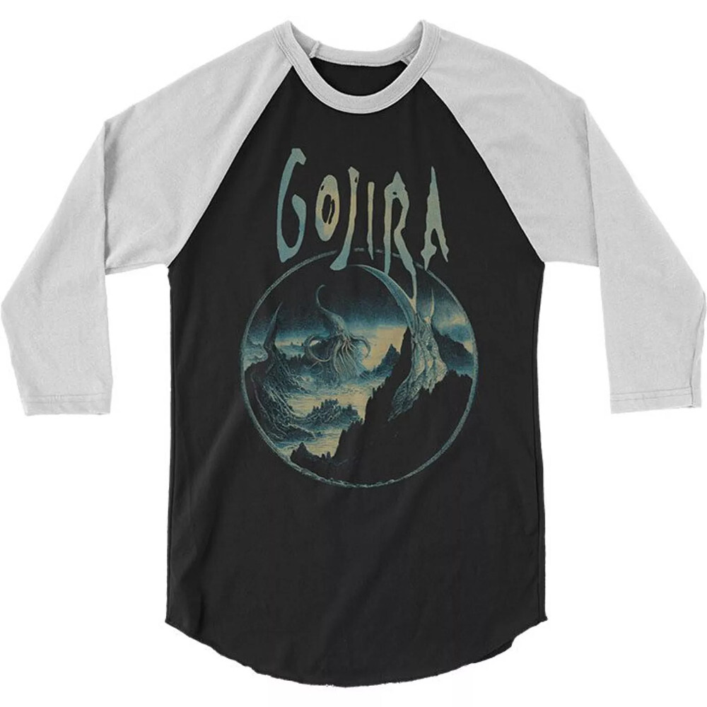 GOJIRA Name: " Sea Creature " Garment Style: 3/4 Sleeve Raglan T-Shirt Color: White/Black Images On: Front Size Type: Adult (Unisex) This is a brand new officially licensed 100% cotton garment. See pictures for sizing chart.