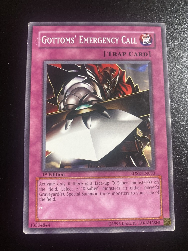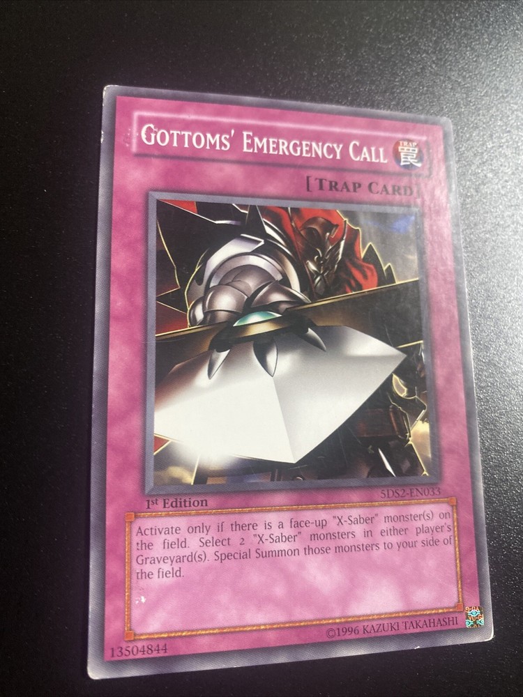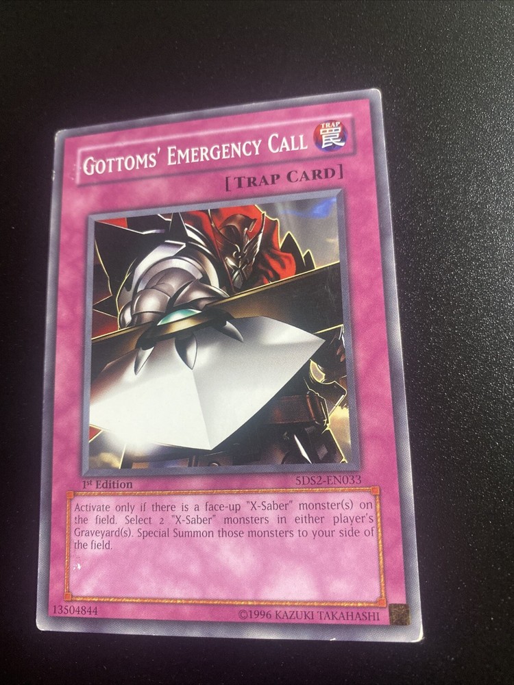 This is a lightly played Gottoms' Emergency Call card from the Yu-Gi-Oh! 5D's 2009 set. It features a light color and is a common rarity card. The card number is 5DS2-EN033 and it is a 1st edition card. This card is perfect for collectors and players of the Yu-Gi-Oh! game.