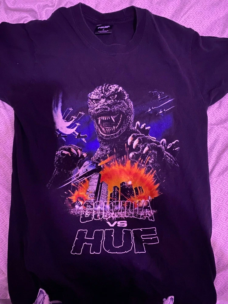Graphic T-Shirts: Women's Dollskill HUF Godzilla Tour S Graphic Tee. Condition is pre-owned. Hardly worn and no tears/scratches. Shipped with USPS First Class