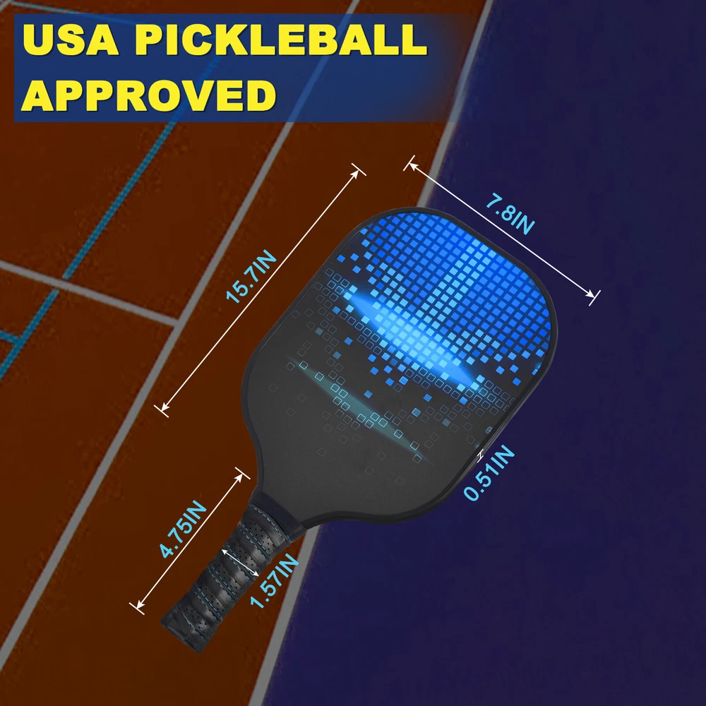 Document PERFECT STRENGTH & RIGIDITY MATERIAL - This Pickleball paddles use composite polymer core, which has perfect strength and rigidity, and is light in weight, provides nice bounce, reduces ball deflection, which improves your pitching performance. The pickleball paddle strikes the perfect balance between great control and power.SUPERIOR EDGE GUARD - The edge of the racket is protected. When your ball falls to the ground, you don't have to worry about damage of the racket. You can do your best to complete the game. And the thin edge protection will not give you a sense of weight, so you can balance the process of wave the racket.RACKET SPECIFICATIONS - USA Pickleball Approved(USAPA), our pickleball paddle weighs 8 ounces and measures 15.7"L x 7.8"W. Grip Circumference: 4.25 inches, Grip Length: 4.75 inches, Pickleball rackets come with a durable protective bag. Every pickleball paddle of us is designed to be an awesome pickleball paddle for either a beginner or a professional player.COMFORTABLE GRIP - High anti-slip, abrasion resistant and durable one-piece grip for maximum comfort. Pickleball paddle is perforated, sweat-absorbent, and cushioned, to allow for a better paddle grip, you can have a great experience for the exercise.AFTER-SALES SERVICE - Every pickleball paddle is backed by superior quality and under strict quality inspection. Our aim is to achieve greater customer satisfaction. If you have any questions, please feel free to contact us, we will be more than happy to help you. Graphite Pickleball Paddle Set Carbon Fiber Polymer Core with Protective Cover PERFECT STRENGTH & RIGIDITY MATERIAL - This Pickleball paddles use composite polymer core, which has perfect strength and rigidity, and is light in weight, provides nice bounce, reduces ball deflection, which improves your pitching performance. The pickleball paddle strikes the perfect balance between great control and power. SUPERIOR EDGE GUARD - The edge of the racket is protected. When your ball falls to the ground, you don't have to worry about damage of the racket. You can do your best to complete the game. And the thin edge protection will not give you a sense of weight, so you can balance the process of wave the racket. RACKET SPECIFICATIONS - USA Pickleball Approved(USAPA), our pickleball paddle weighs 8 ounces and measures 15.7"L x 7.8"W. Grip Circumference: 4.25 inches, Grip Length: 4.75 inches, Pickleball rackets come with a durable protective bag. Every pickleball paddle of us is designed to be an awesome pickleball paddle for either a beginner or a professional player. COMFORTABLE GRIP - High anti-slip, abrasion resistant and durable one-piece grip for maximum comfort. Pickleball paddle is perforated, sweat-absorbent, and cushioned, to allow for a better paddle grip, you can have a great experience for the exercise. AFTER-SALES SERVICE - Every pickleball paddle is backed by superior quality and under strict quality inspection. Our aim is to achieve greater customer satisfaction. If you have any questions, please feel free to contact us, we will be more than happy to help you. Hot Item Payment 1.We accept eBay payment . 2.Payment must be received within 7 business days of auction closing. Shipping 1.We ship to your eBay or Paypal address. Please make sure your eBay and Paypal address is correct before you pay. 2.Items will be shipped within 1-3 business day when we received payment. 3.Delivery time depends on destination and other factors. Description Policy Graphite Pickleball Paddle Set Carbon Fiber Polymer Core with Protective Cover PERFECT STRENGTH & RIGIDITY MATERIAL - This Pickleball paddles use composite polymer core, which has perfect strength and rigidity, and is light in weight, provides nice bounce, reduces ball deflection, which improves your pitching performance. The pickleball paddle strikes the perfect balance between great control and power. SUPERIOR EDGE GUARD - The edge of the racket is protected. When your ball falls to the ground, you don't have to worry about damage of the racket. You can do your best to complete the game. And the thin edge protection will not give you a sense of weight, so you can balance the process of wave the racket. RACKET SPECIFICATIONS - USA Pickleball Approved(USAPA), our pickleball paddle weighs 8 ounces and measures 15.7"L x 7.8"W. Grip Circumference: 4.25 inches, Grip Length: 4.75 inches, Pickleball rackets come with a durable protective bag. Every pickleball paddle of us is designed to be an awesome pickleball paddle for either a beginner or a professional player. COMFORTABLE GRIP - High anti-slip, abrasion resistant and durable one-piece grip for maximum comfort. Pickleball paddle is perforated, sweat-absorbent, and cushioned, to allow for a better paddle grip, you can have a great experience for the exercise. AFTER-SALES SERVICE - Every pickleball paddle is backed by superior quality and under strict quality inspection. Our aim is to achieve greater customer satisfaction. If you have any questions, please feel free to contact us, we will be more than happy to help you. Hot Item Payment 1.We accept eBay payment . 2.Payment must be received within 7 business days of auction closing. Shipping 1.We ship to your eBay or Paypal address. Please make sure your eBay and Paypal address is correct before you pay. 2.Items will be shipped within 1-3 business day when we received payment. 3.Delivery time depends on destination and other factors.