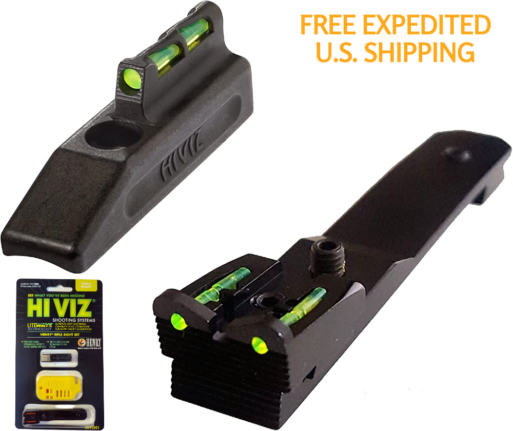 Henry .22LR Interchangeable Fiber Optic Front Sight Complete Kit . HiViz U.S. Ships FREE & FAST We Ship 6 Days A Week More Henry, Night Vision, Optics In Store Free Shipping For 48 State Continental U.S. Only All Territories/Province, Including P.R. Ask For Quote 10% CANCELLATION FEE NO EXCEPTIONS FOR MODELS WITH BARREL BAND. Fully adjustable Rear sight includes red and green interchangeable Litepipes. Interchangeable Front LitePipes in green, red, and white. Blade width 0.125 X 0.215 tall. The sight height is 0.215 inches, equivalent to the factory #3 front sight. Includes: (1) Front Post. (1) Rear Post (5) Lightpipes. (1) Install/Carry Key. MORE HENRY INSIDE STORE: HERE