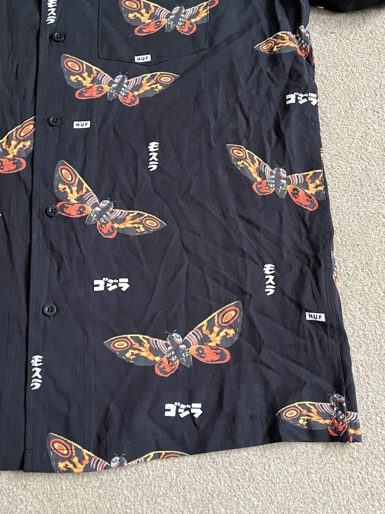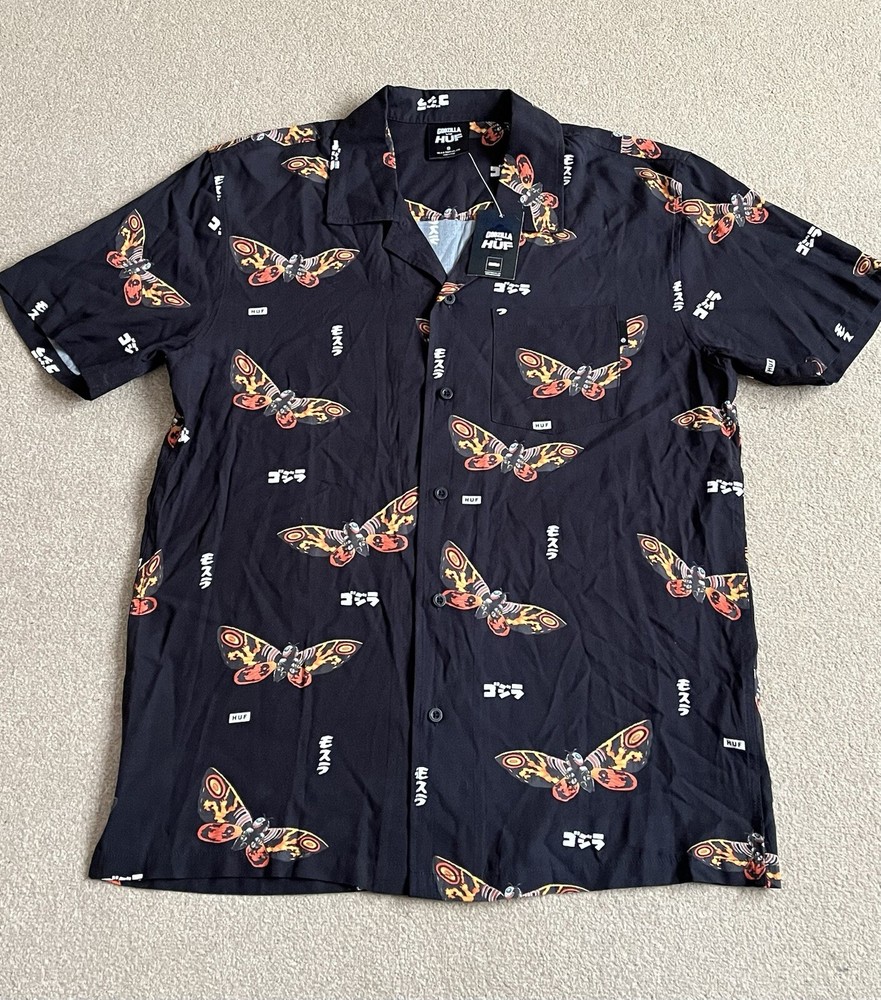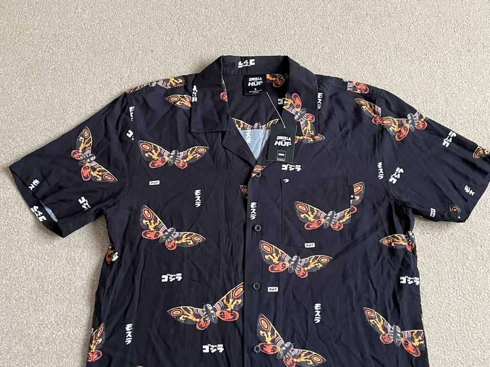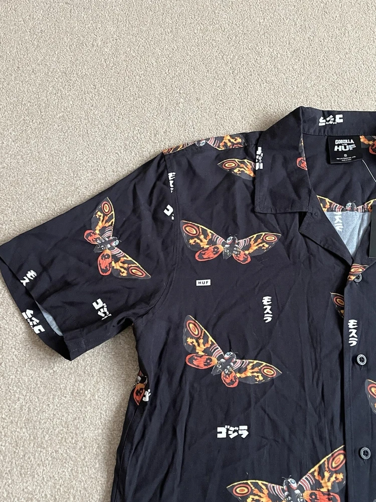HUF × Godzilla Mothra Resort Button Up Shirt Size Small - NEW RARE. Condition is New with tags. Dispatched with Royal Mail Tracked 48....