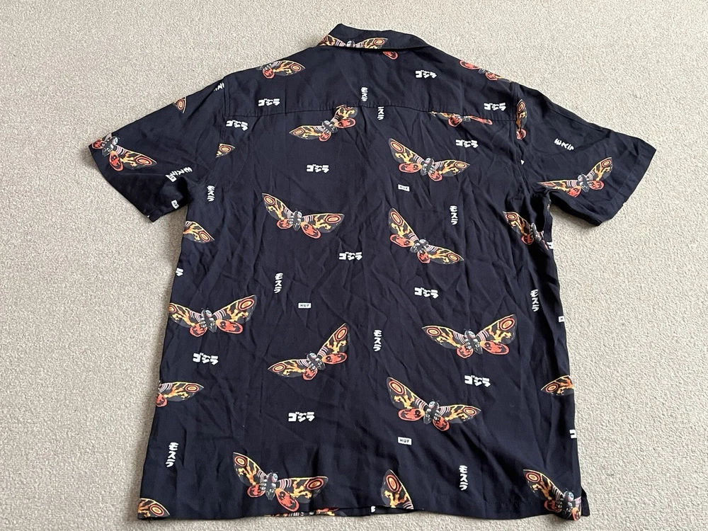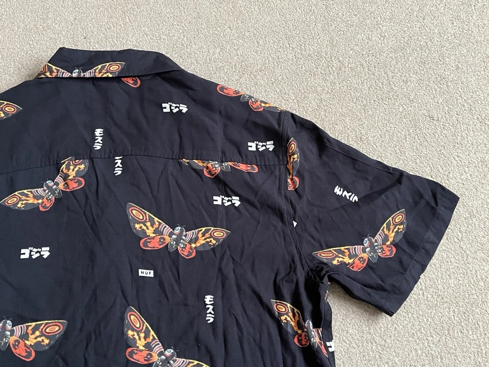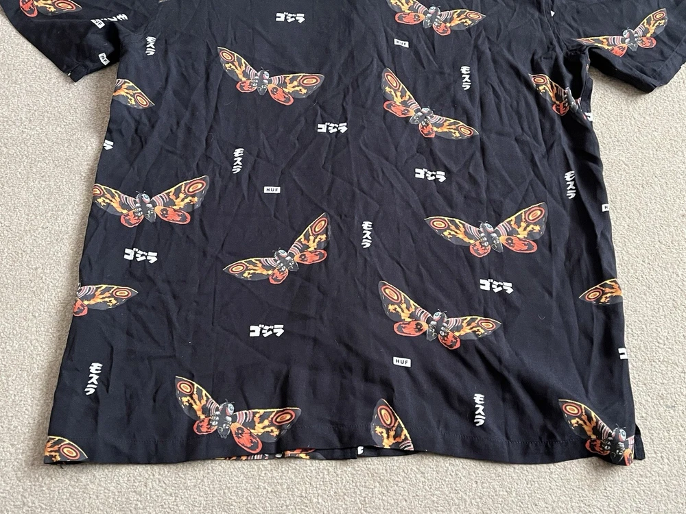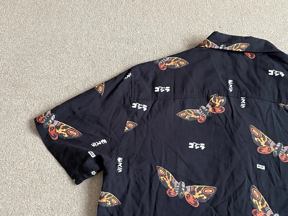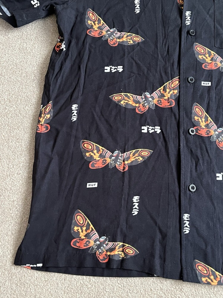 HUF × Godzilla Mothra Resort Button Up Shirt Size Small - NEW RARE. Condition is New with tags. Dispatched with Royal Mail Tracked 48....