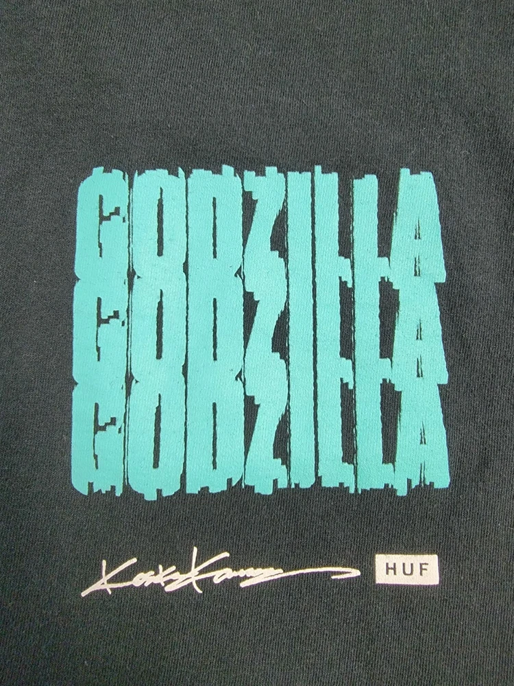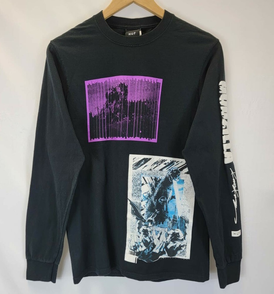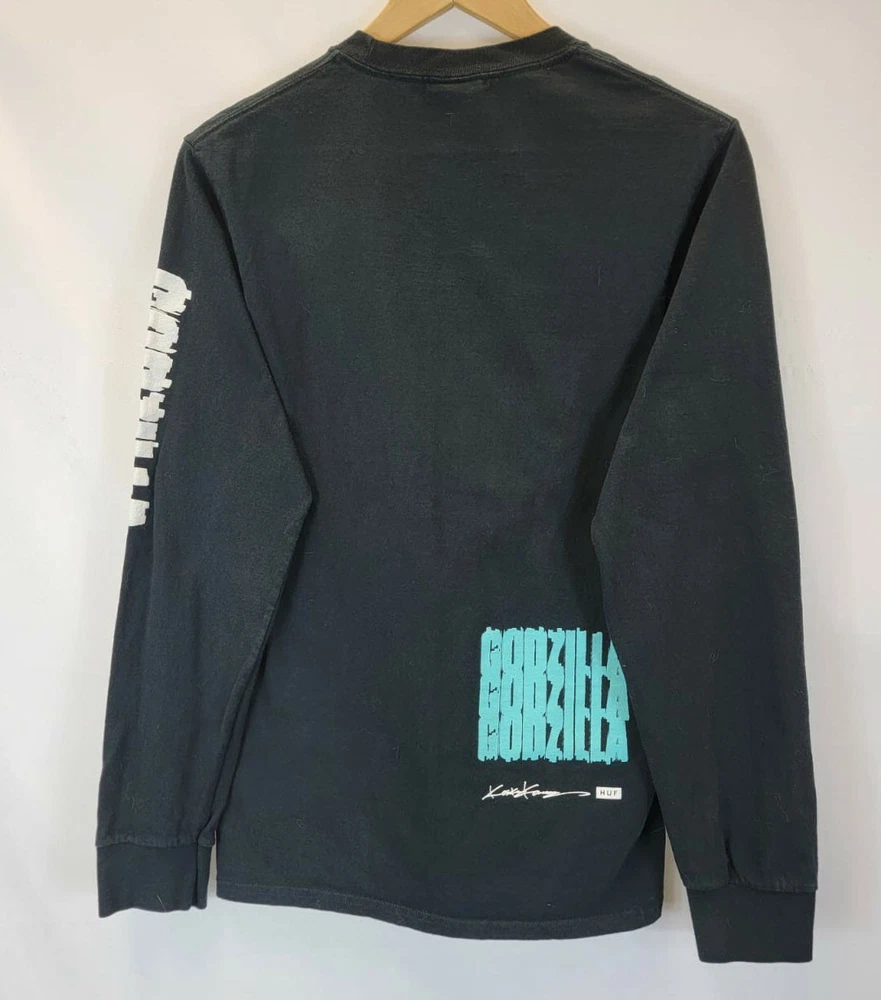 Very Good Condition HUF X Godzilla X Kosuke T-shirt Men's Size Small Black Long Sleeve Graphic Crew Neck