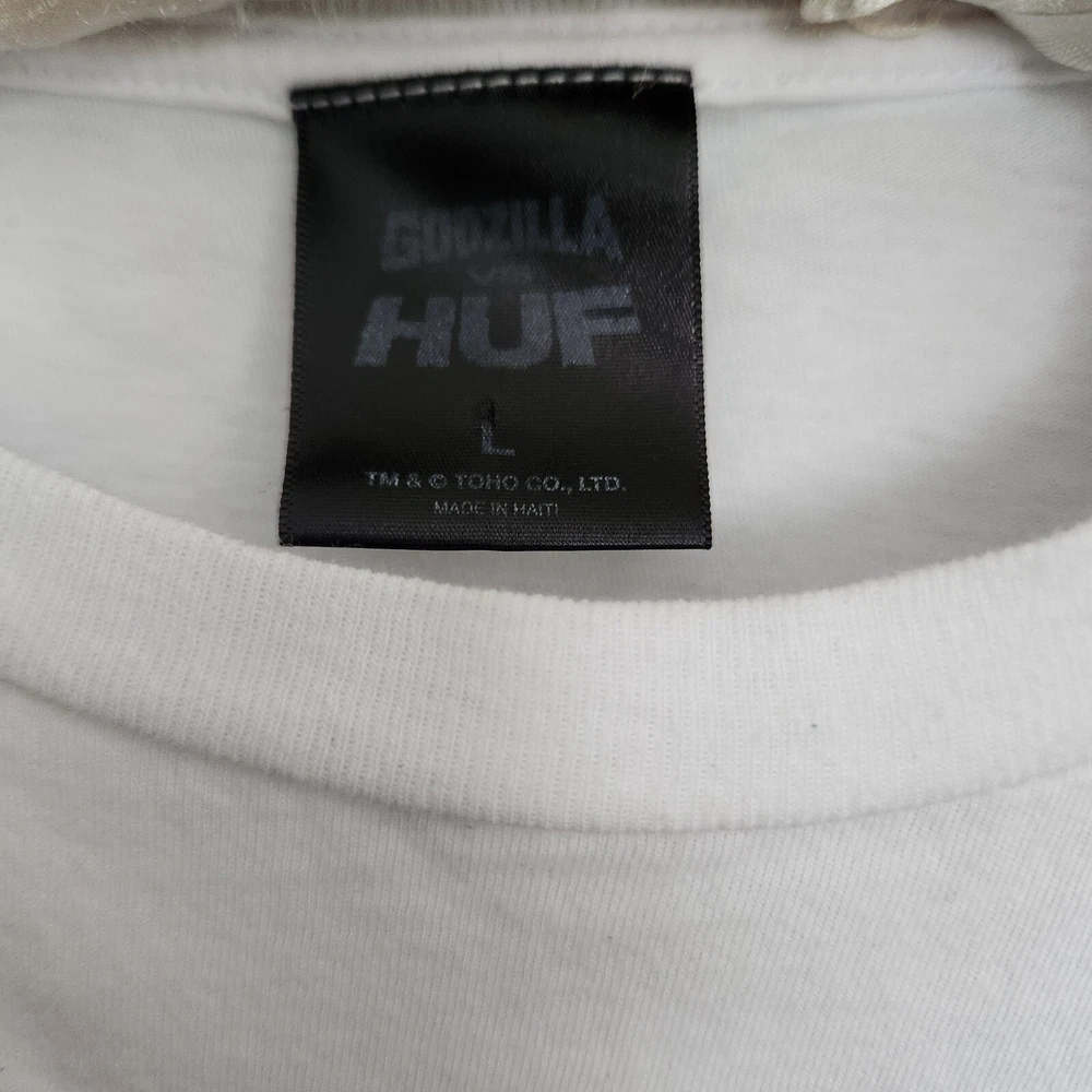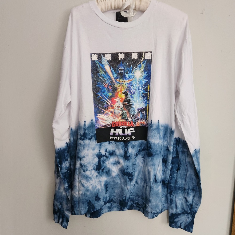 HUF x Godzilla T-Shirt men's Small Long Sleeve Graphic Crew Neck Skate Pit to pit measures 22 inches.