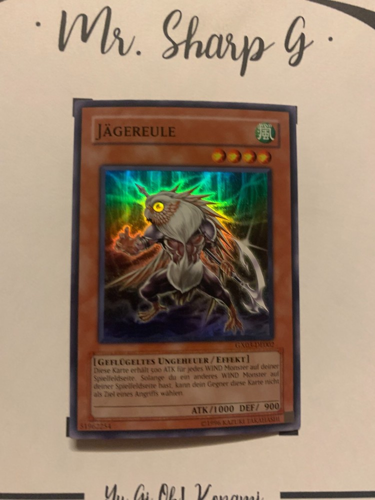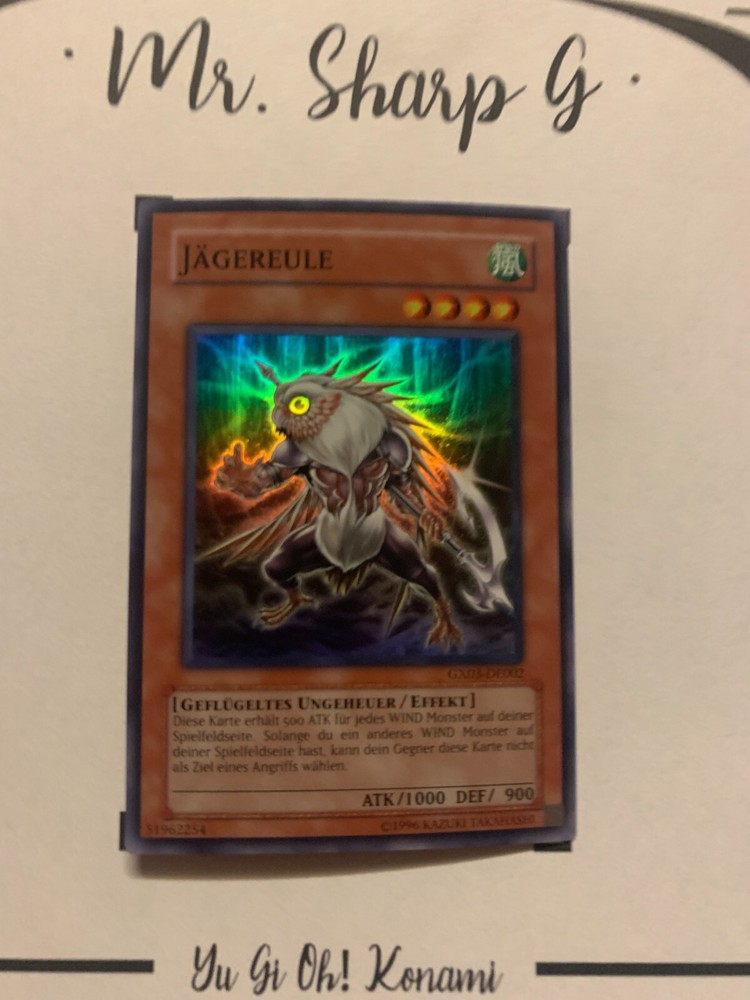 - Mr. Sharp G - - Online Store - TRADING CARDS-TCG-COLLECTION-SETS-TOURNAMENT-Yu Gi Oh! Konami * * * JÄGEREULE - GX02-DE002 - Bitte schauen Sie sich die beigefügten Bilder an, um einen vollständigen Überblick über den Zustand jedes Artikels zu erhalten. - Zustand des Artikels: Neu* - in einem neuwertigem Zustand. (* Neuer Zustand - kann aber leichte Mängel wie 'whitening', leichte Eindrücke, Dellen u.a. haben - die von der Herstellung der Karte aus Produktion stammen, bitte den Bildern und in der Beschreibung den Zustand entgegennehmen) - Typ/ Serie: GEFLÜGELTES UNGEHEUER/ EFFEKT / GX03-DE002 - Seltenheitsstufe/ Rarity: SUPER RARE - Edition : GX SPIRIT CALLER / 2006 / DEUTSCH * * * + Kartenschutzhülle & Toploader inklusiver im Preis + mehrfache Bestellung = einmalige Versandkosten + versicherter Versand Bestellung in Höhe - v. 8,50EUR in Deutschland/ Inland - v. 12,50EUR im Ausland/ International + Großbestellungen kostenloser Versand Inland und International - Bei Fragen, Details, nicht im Bestand gewünschte Karten/ Artikel oder Versandgutschriften schreiben Sie uns! Wir freuen uns auf Ihre Nachricht! - Vielen Dank für Ihr Vertrauen, Unterstützung und Besuch in unserem Store ! - Ihr Mr. Sharp G Team