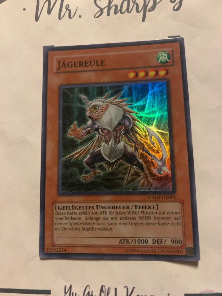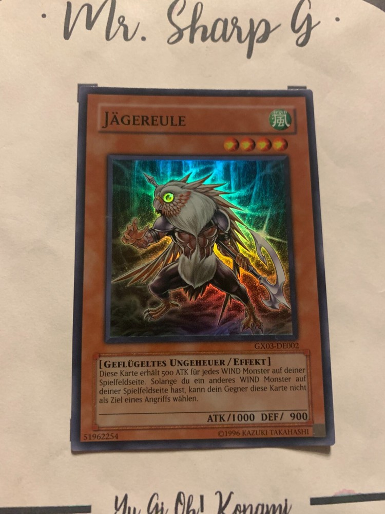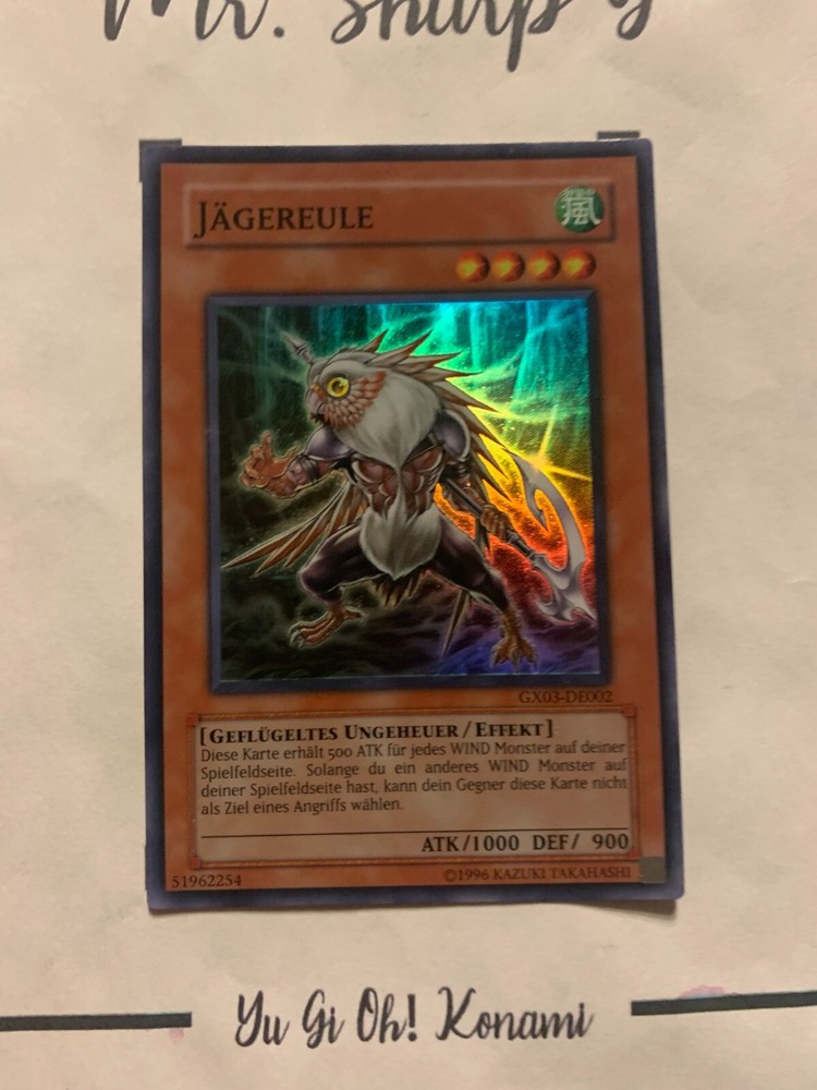 - Mr. Sharp G - - Online Store - TRADING CARDS-TCG-COLLECTION-SETS-TOURNAMENT-Yu Gi Oh! Konami * * * JÄGEREULE - GX03-DE002 - Bitte schauen Sie sich die beigefügten Bilder an, um einen vollständigen Überblick über den Zustand jedes Artikels zu erhalten. - Zustand des Artikels: Neu* - in einem neuwertigem Zustand. (* Neuer Zustand - kann aber leichte Mängel wie 'whitening', leichte Eindrücke, Dellen u.a. haben - die von der Herstellung der Karte aus Produktion stammen, bitte den Bildern und in der Beschreibung den Zustand entgegennehmen) - Typ/ Serie: GEFLÜGELTES UNGEHEUER/ EFFEKT / GX03-DE002 - Seltenheitsstufe/ Rarity: SUPER RARE - Edition : GX SPIRIT CALLER / 2006 * * * + Kartenschutzhülle & Toploader inklusiver im Preis + mehrfache Bestellung = einmalige Versandkosten + versicherter Versand Bestellung in Höhe - v. 8,50EUR in Deutschland/ Inland - v. 12,50EUR im Ausland/ International + Großbestellungen kostenloser Versand Inland und International - Bei Fragen, Details, nicht im Bestand gewünschte Karten/ Artikel oder Versandgutschriften schreiben Sie uns! Wir freuen uns auf Ihre Nachricht! - Vielen Dank für Ihr Vertrauen, Unterstützung und Besuch in unserem Store ! - Ihr Mr. Sharp G Team