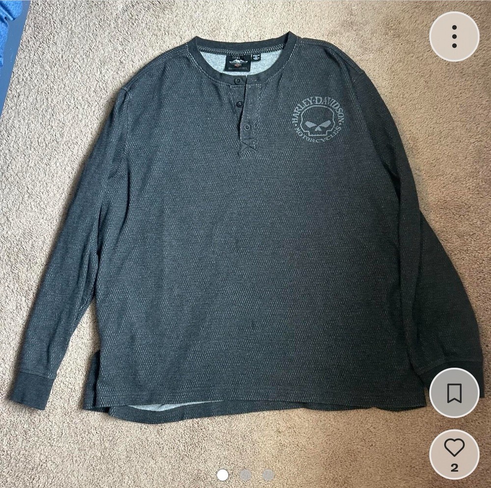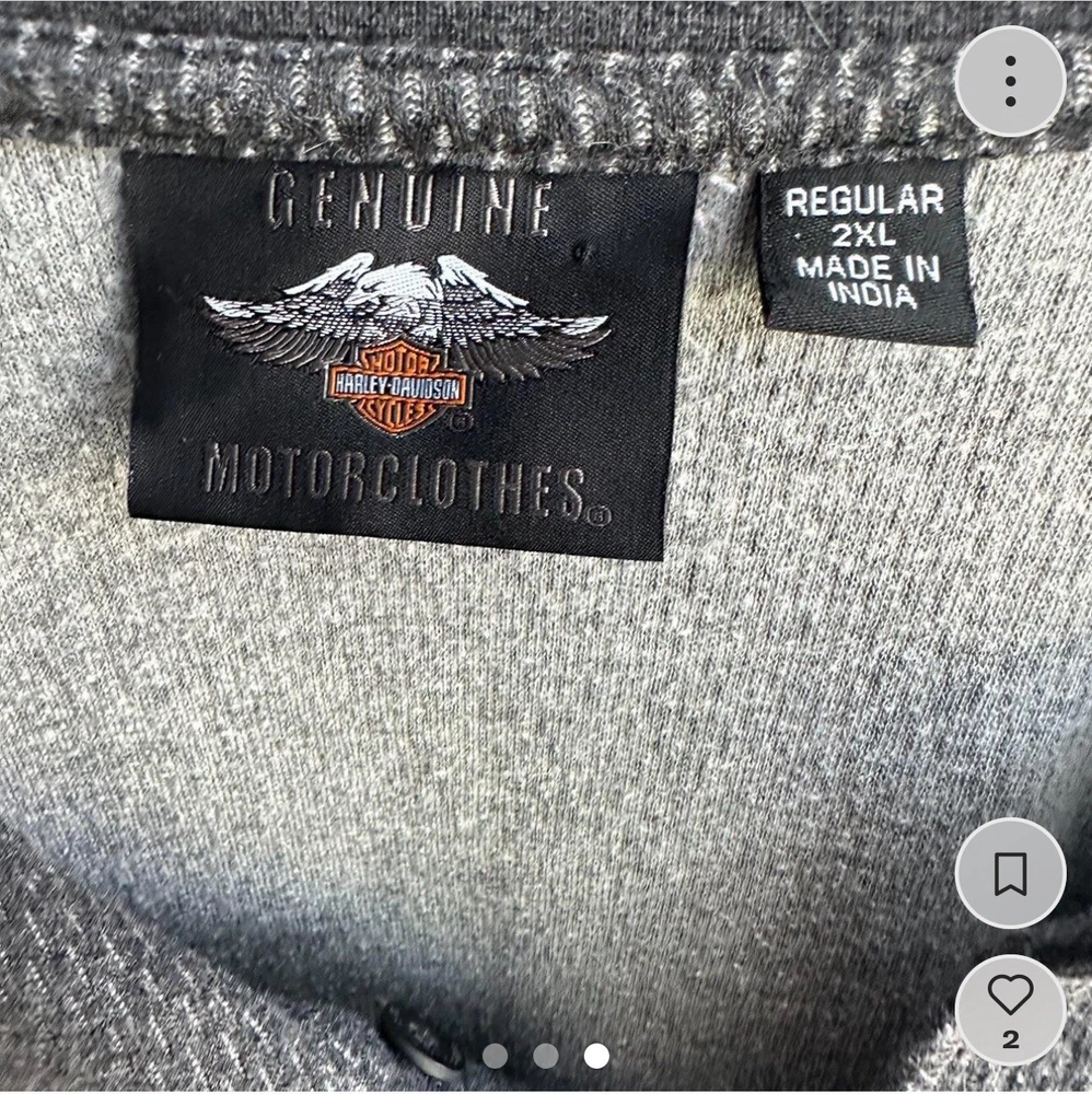 This rare and highly sought-after Harley-Davidson long sleeve t-shirt in size 2XL is a must-have for any die-hard fan or collector. Emblazoned with the iconic Harley-Davidson logo in contrasting colors against a gray background, this t-shirt is perfect for any casual occasion. Made with high-quality materials, this shirt is durable and comfortable, making it ideal for everyday wear. Whether you're hitting the open road or just hanging out with friends, this Harley-Davidson long sleeve t-shirt is a statement piece that is sure to turn heads. So, if you're looking for a stylish and comfortable addition to your wardrobe, look no further than this must-have t-shirt.