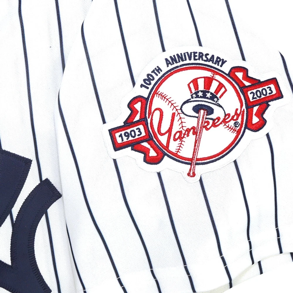** The winner will receive the exact item shown in the listing 100% Polyester fabric Felt applique Majestic logo on right sleeve Imported Jock tag Full Button down Jersey Rounded hem Tackle Twil Sewn Twill lettering & number Yankees 100th Anniversary Patch sewn on the left sleeve inkfrog terapeak