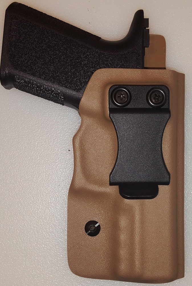 This is a rugged IWB style holster for the Poly 80 PF940C (GLOCK 19) pistol. The holster is produced by the team of public safety professionals from Darwin Defense and designed for use by the most demanding Military, Law Enforcement, or Civilian end user. Choose your Color.....Tell us your specs!! We're sure you'll feel confident knowing that Darwin Defense is on your side You will not regret purchasing this holster! The retention is excellent, positive, and secure! All Holsters made with .080 material! (Kydex, Boltaron, and/or Holstex) All holster material is chemically bonded as well as secured with eyelets (where applicable) This holster will fit your weapon like a glove (Please specify belt attachment size and type preference when ordering) All holsters are available in your choice of Black, Carbon Fiber, Gunmetal Gray, Red, Flat Dark Earth, or any other color, just let us know what you need........ Compare to holsters that cost at least $20 or even $30 more, there's no contest!! Please take a moment to read our feedback ! Get the holster you need and save some $$$ Put a Darwin Defense holster on your side!! Please take a moment to look at our other items offered. All holsters are available for Right and Left handed shooters. Let us know what you want and we will do our best to accommodate your request. The best holster for you is one your going to use! Darwin Defense is an avid supporter of the Second amendment and supports organizations that further our cause. All feedback, questions or comments are welcome. FREE SHIPPING ! FREE SHIPPING ! FREE SHIPPING ! FREE SHIPPING ! FREE SHIPPING ! FREE SHIPPING !