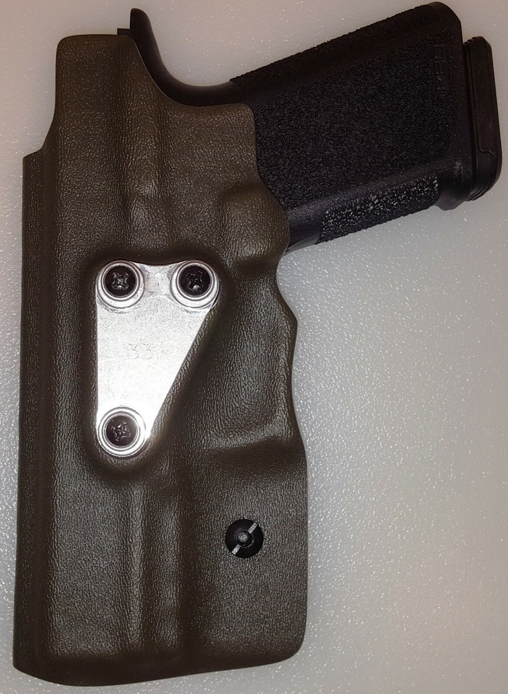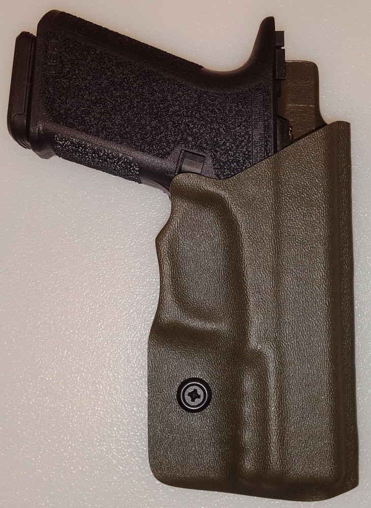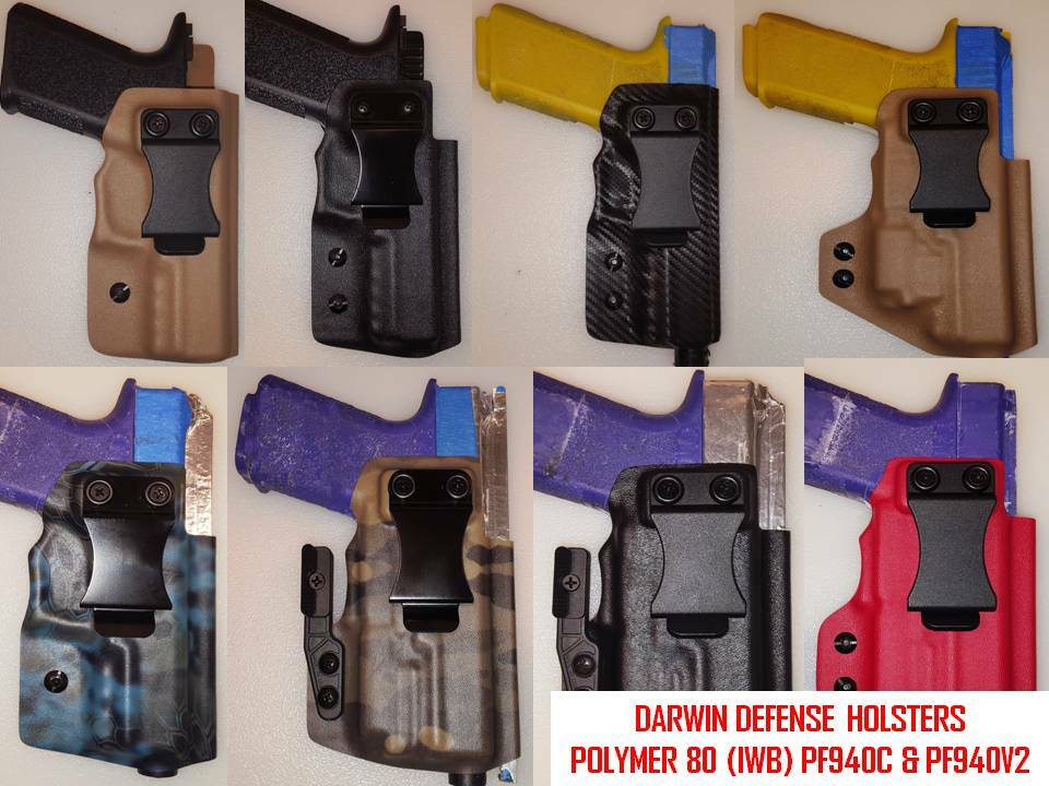 This is a rugged OWB style holster for the POLYMER 80 (PF940sc) with RTI Hanger (#33) This holster is produced by a team of public safety professionals at Darwin Defense and designed for use by the most demanding Military, Law Enforcement, or Civilian end user. We are more than happy to build to your spec! Just let us know....Need an RMR Cut? Suppressor Height Sights? ...... No Problem (Additional charges may apply) We're sure you'll feel confident knowing that Darwin Defense is on your side. You will not regret purchasing this holster! The retention is excellent, positive, and secure! This holster will fit your weapon like a glove! All holsters are available in your choice of Black, Carbon Fiber, or any other color, just let us know what you need........ Put a Darwin Defense holster on your side!! Please take a moment to look at our other items offered. All holsters are available for Right and Left handed shooters. Let us know what you want and we will do our best to accommodate your request. Darwin Defense is an avid supporter of the Second amendment and supports organizations that further our cause, we truly want you to carry confidently and will work hard to be the manufacturer to meet your needs. All feedback, questions or comments are welcome. Custom orders are our specialty! Contact us.. Whatever your holster needs are... FREE SHIPPING ! FREE SHIPPING ! FREE SHIPPING ! FREE SHIPPING ! FREE SHIPPING !