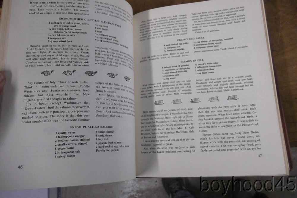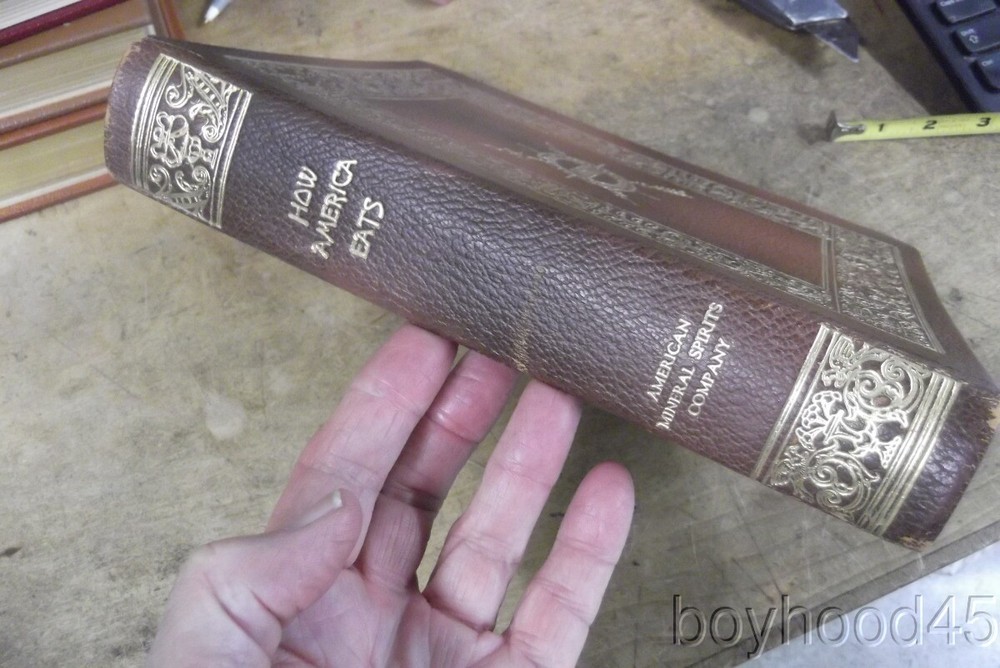 How America Eats by Clementine Paddleford-1961-Leather How America Eats by Clementine Paddleford-1961-Leather Click images to enlarge Description This is "How America Eats" by Clementine Paddleford. Published by Charles Scribner's Sons, New York, 1961. Second Printing. Bound in full leather and distributed as gift by American Mineral Spirits Company. Leather shows light wear/scuffing. There is wear/chipping to gilt page edges as shown in my photos. Clean, unmarked copy that I will call Very Good. Measures 7 3/4 X 9 1/4, 495 pages. A SCARCE FEW copies of this book can be found on Amazon and other internet booksites for upwards of $359 for clothbound copies!! I will offer this lovely leatherbound copy for only $125.00 plus $5.00 S&H in the US. Condition Notes: Clean, lightly-worn copy!! Payment Paypal Shipping Domestic shipping: Fixed Shipping Charges. International shipping: Fixed Shipping Charges. Shipping Carrier Domestic International Shipping Locations Usps Book Rate $5.00 - - Usps Priority Intl - $55.00 Worldwide I will ship to: United States, Worldwide Vendio Images: More than just a pretty image. 250+ Mobile Responsive & Active Content Free Listing Templates with Vendio Sales Manager. Vendio provides powerful selling automation for sellers of all sizes. Get business information that counts! - Vendio Counters are active content free.