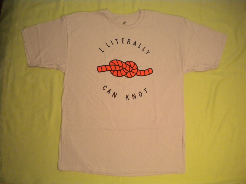 This is a Limited Edition TeeFury T-Shirt titled: I Literally Can Knot! Size = Men's / Unisex X-LARGE. Shirt Color = LIGHT GREY. The exact measurements given on the TeeFury website are: 24" width & 31" length. This was one of their offerings from 5+ Years Ago, available for 24 Hours Only, and produced at a higher quality than the print-on-demand shirts. The first photo is the art image from the TeeFury website; the rest of the photos are Actual Photos of the Shirt you will receive! This is in BRAND NEW Condition! Message me with any Questions! If you are purchasing multiple items & there is any issue with Combined Shipping, please Contact Me before making payment so it can be fixed. I can also Combine Shipping with my other eBay Stores as well; just Contact Me so I can adjust the shipping between the two on the Invoices. You can view my other eBay Stores here: http://www.ebay.com/sch/m.html?_ssn=catastrophe_collectibles&_sop=1 http://www.ebay.com/sch/m.html?_ssn=ex_exile_of_x-isle&_sop=1 Check Back for more Comic Books, T-Shirts, & Collectibles, as I am Always Adding More!! TeeFury T-shirts bare the TeeFury logo on the Inner Neck. Beware of Rip-Offs from Print-On-Demand websites, they are of Sub-Par quality. Avoid suspicious listings with stolen/vague photos & seemingly endless quantities of shirts available!