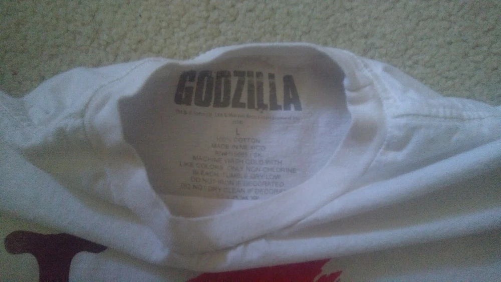 Bought this to go see the Godzilla release in 2014, wore it maybe twice. I typically don't like wearing white shirts but made an acceptation for a movie. No stains, just a little old. Freshly washed prior to listing. I believe this came from Hot Topic, almost certain of this. I see the older designs of Godzilla being used, so this one is niche.