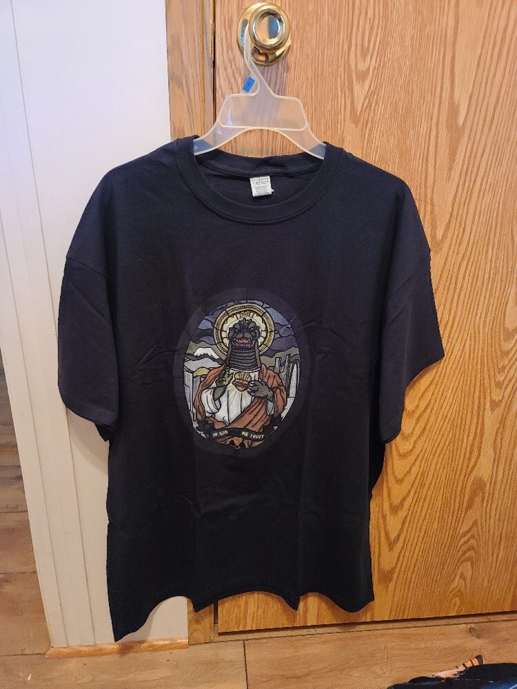 In Godzilla We Trust XL T--shirt. NEVER WORN...BRAND NEW!!! Great gift or stocking stuffer for the holidays!!!...