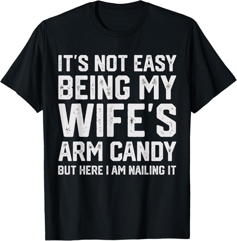 It's Not Easy Being My Wife's Arm Candy Funny Husband Mens T-Shirt FREE SHIPPING! FAST DELIVERY! DOMESTIC SHIPPING! Delivery from 3 to 7 business days! Features and further details Stay classy and unique with custom cotton and a pretty thick t-shirt. The print on demand t-shirt is designed with a crew neckline, short sleeves for better comfort, taped neck and shoulders, and double-needle sleeves for enhanced durability. It?s a good choice for both men and women. Material: 5.3 oz/yd², Dark Heather, Graphite Heather, Heather Navy, Heather Red, Tweed (50% cotton, 50% polyester); Sport Grey, Antique Irish Green, Antique Orange, Antique Sapphire (90% Cotton/10% polyester), Ash (99% Cotton/ 1% Polyester), All Others (100% cotton). Classic, unisex fit - Comfortable to wear and suitable for anyone to wear. Non-stitched, classic width, rib collar. Printing technique: Direct to Garment. Color: Ash, Black, Charcoal, Dark Chocolate, Dark Heather, Forest Green, Gold, Ice Grey, Irish Green, Kiwi, Light Blue, Light Pink, Maroon, Military Green, Navy, Orange, Purple, Red, Royal, Sand, Sport Grey, Tropical Blue, Turf Green, White, Antique Irish Green, Antique Orange, Antique Sapphire, Azalea, Cardinal Red, Carolina Blue, Cobalt, Coral Silk, Cornsilk, Daisy, Graphite Heather, Heather Navy, Heather Red, Heliconia, Lime, Natural, Sapphire, Tweed. Size: S, M, L, XL, 2XL, 3XL, 4XL, 5XL. Blank product: Gildan 5000 Shipping We shipping from US for all orders! We offer FREE shipping on all orders! We ship within Three business days of payment, usually sooner. We use a selection of shipping services such as UPS, FedEx, USPS etc. We only ship to the lower 48 states, no APO/FPO addresses or PO Boxes allowed. Local pickups and combined shipping options are not provided at this time. Feedback Customer satisfaction is very important to us. If you have any problem with your order, please contact us and we will do our best to make you satisfied. Contact Us If you have any queries, please contact us via ebay. We usually respond within 24 hours on weekdays. Please visit our store to check out other items for sale! Thank you for shopping at our store.