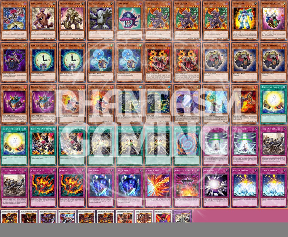 Deck Name: Jack Atlas King Red Dragon Archfiend 5D's Resonator Deck Yugioh # Main Deck (50) 1 - Mad Archfiend 1 - Small Piece Golem 1 - Medium Piece Golem 1 - Big Piece Golem 1 - Trap Eater 3 - Vice Dragon 1 - Power Giant 1 - Barrier Resonator 1 - Chain Resonator 2 - Clock Resonator 2 - Creation Resonator 2 - Crimson Resonator 3 - Dark Resonator 2 - Double Resonator 2 - Flare Resonator 2 - Force Resonator 1 - Mirror Resonator 1 - Synkron Resonator 1 - Red Resonator 2 - Resonator Engine 2 - Resonator Command 3 - Resonator Call 1 - Polymerization 2 - King's Synchro 2 - King's Consonance 2 - King Scarlet 2 - Red Screen 1 - Crimson Fire 1 - Powerful Rebirth 1 - Spacegate 2 - Tuner's Barrier # Extra Deck (10) 1 - Hot Red Dragon Archfiend 1 - Hot Red Dragon Archfiend Abyss 1 - Hot Red Dragon Archfiend Bane 1 - Hot Red Dragon Archfiend King Calamity 2 - Red Dragon Archfiend 1 - Scarlight Red Dragon Archfiend 1 - Tyrant Red Dragon Archfiend 1 - Chaos King Archfiend 1 - Multiple Piece Golem You will receive all of the following cards listed above. Most cards will will be in near mint condition. In the case of certain older cards we will do our best but some cards may be light or even moderatly played in extreme condtions. Those conditions being the card has not been reprinted in a number of years and con no longer be easily purchased in light or near mint condition. Set, Rarity, and Edition will vary and cannot be special requested. These lists are constructed with least expensive rarities we have available in stock. All cards are play legal copies. Note: If purchasing a Yugioh Deck all Speed duel cards are 100% legal at all levels of play. Store Policies Here at PMG_LLC , we pride ourselves on having the best customer service around. If you have any questions or can't seem to find something that you want please do not hesitate to contact us. We will do our best to respond to all questions within one business day. Hours of Operation: Monday-Friday: 2:30pm - 10:00pm Saturday- 10:00am - 8:00pm Sunday 11:00am - 5:30pm Note: We are closed all national holidays. Info: Thank you for choosing PMG_LLC . We appreciate your business. We ship Monday through Friday to make sure you get your deck as quickly as possible. All orders priority orders can use combined shipping. In order to use the combined shipping your whole purchase needs to be checked out as one order. We ship once we have received your payment and payment has cleared. As always if you have any questions or concerns please feel free to contact us via email. Shipping Information: We ship Monday through Friday, barring national holidays during which the United States Postal Service is closed. If you purchase a card on Friday or Saturday please bear in mind it will not ship until Monday. US Shipping: First Class Mail : Free. Comes with tracking information. Priority Mail with Delivery Confirmation : $9.99 All orders are shipped in appropriate protective material inside bubble mailers. International Shipping: We do not offer international Shipping Return Policy: You must return items sold and fulfilled by PMG_LLC within 30 days of delivery to be eligible for a refund. Returns which are damaged in the mail due to improper return packaging will receive partial refunds. We will process a full refund for all items returned in their original condition. In order for us to process your full refund you must include the full name associated with the order as well as the eBay order number inside the return packaging. We will not process returns which do not include the buyer's name and order number. Requirements: Please return items with the original plastic packaging. Failure to do so may result in a partial refund. Also you must inform us of any returns you may wish to process before sending them back. Any items simply send back to us without prior contact will not be eligible for refunds. Important Notes Remember that to benefit from our domestic combined shipping on priority orders you must to pay in a single payment. If you place two separate priority orders you will be charged the $7.50 shipping fee for both orders. If you place multiple orders for Priority shipping you will be charged the corresponding shipping costs for each order, even if you place the orders on the same day. We do not refund shipping costs as we tend to package orders throughout the day and may not notice that you would otherwise have qualified for combined shipping. We want to provide you with 5 Star service and earn your Positive Feedback, so if for any reason you are not happy with your transaction, contact us before leaving feedback. Business Day - Our business day runs from Monday to Friday from 9am to 4pm, excluding US national holidays. Any orders placed or payments cleared less than 4 hours before the close of business will be considered orders from the following business day.