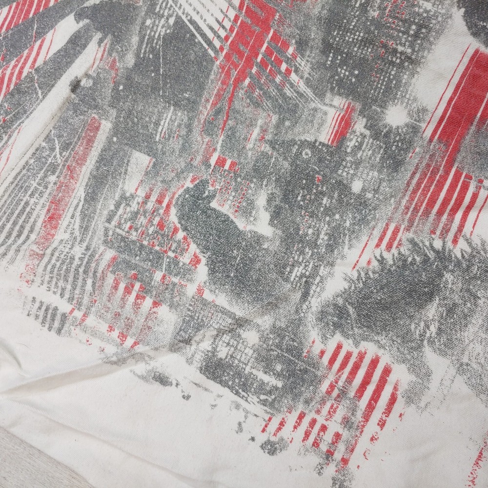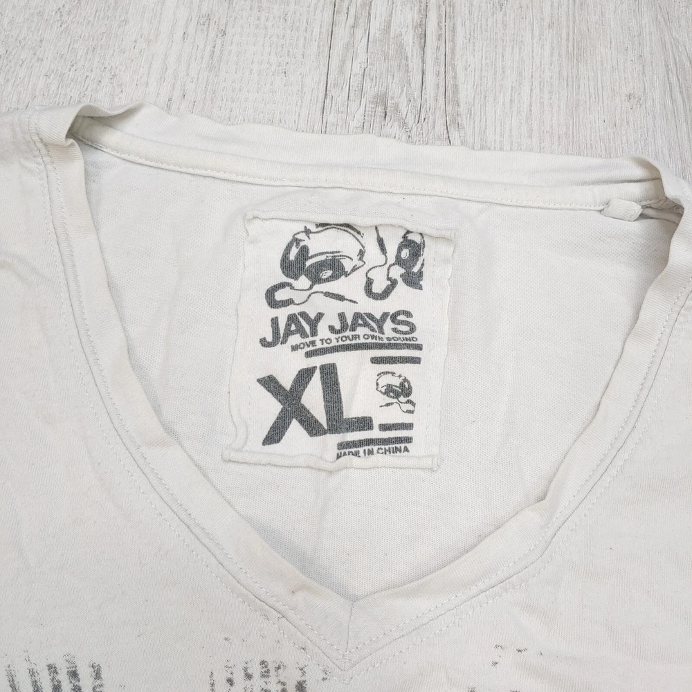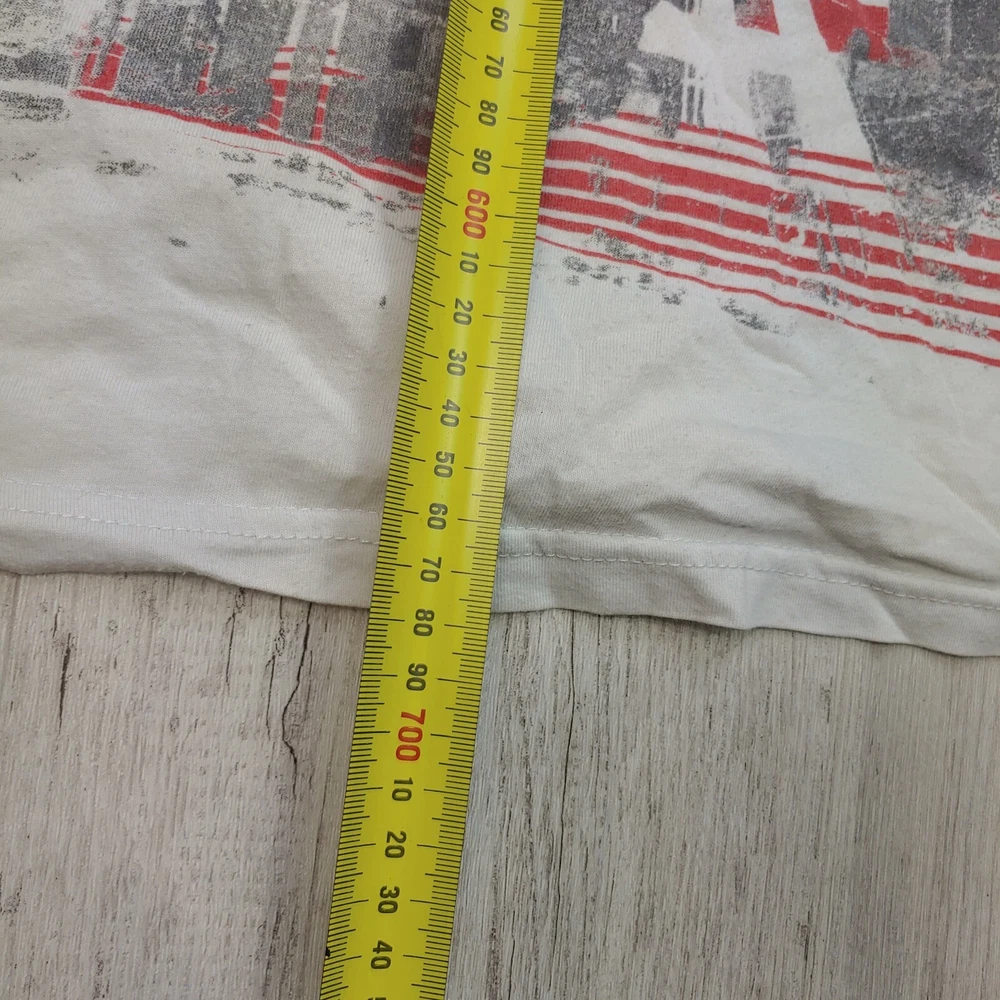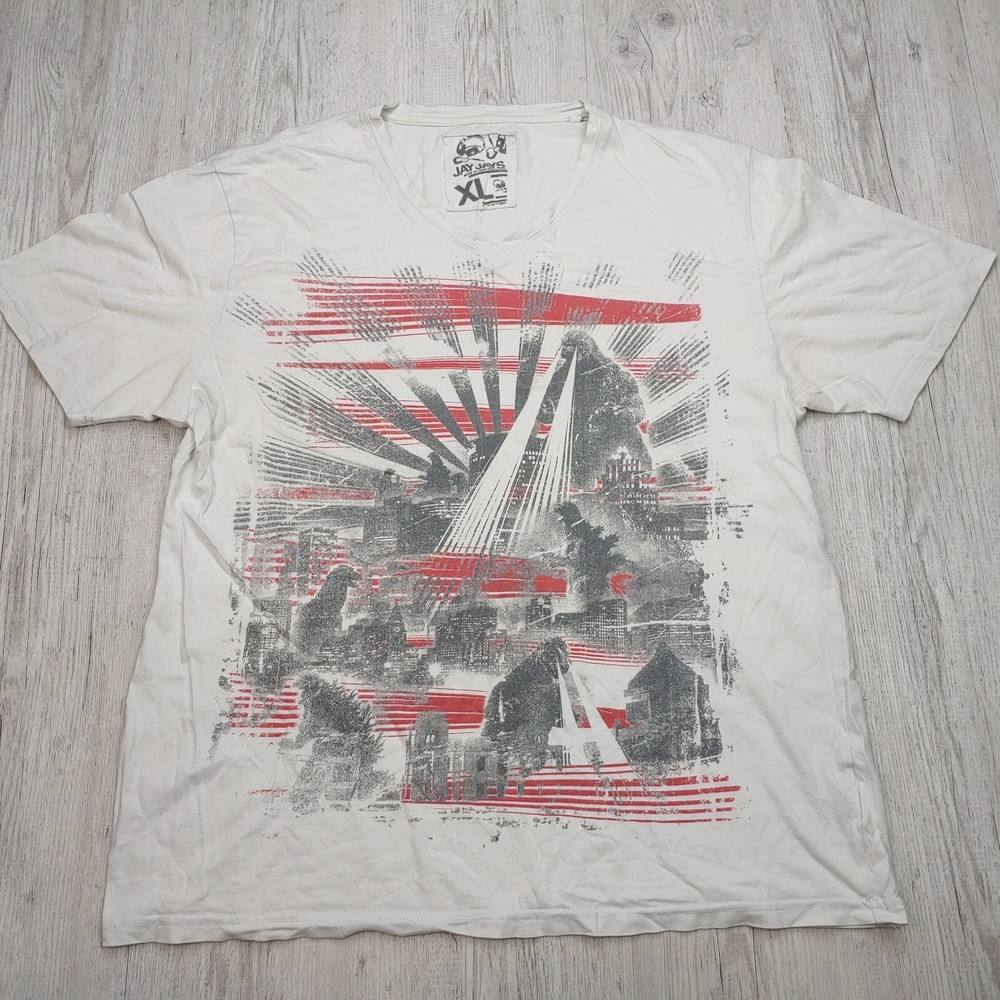 White Jay Jays graphic t-shirt with red and grey abstract city print Size XL; soft cotton feel; made in China Dated 12/2008 — authentic Y2K era streetwear style Features distressed-style Godzilla cityscape print Pre-owned with general signs of wear, no major flaws Measurements: Neck to hem: 53.5 cm Pit to pit: 68 cm #Y2KFashion #Streetwear #GraphicTee #GodzillaStyle #JayJays Measurements: The approximately on the photos in cm on a flat lay in the following order: Length (top to bottom) Width (armpit to armpit) ⚠️ Please be aware that these items may exhibit signs of wear, distress, fading, or discoloration & staining. Some pieces may have holes, rips, pilling, or other flaws. Ask questions and view all photos.