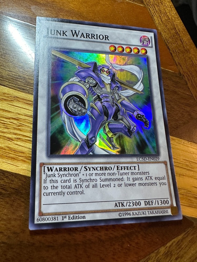 Hello! You are buying one Junk Warrior LC5D-EN029 1st Edition Super Rare i n played condition. Reason for played condition is general play/edge/scratchwear. See photos for details! As a thank you for buying from me, I will throw in two free Yugioh commons! Thank you so much for looking, have a great day! If there is ever an issue, please let me know so I can do whatever I can to resolve it! Please check out my other items! I have many more single cards!