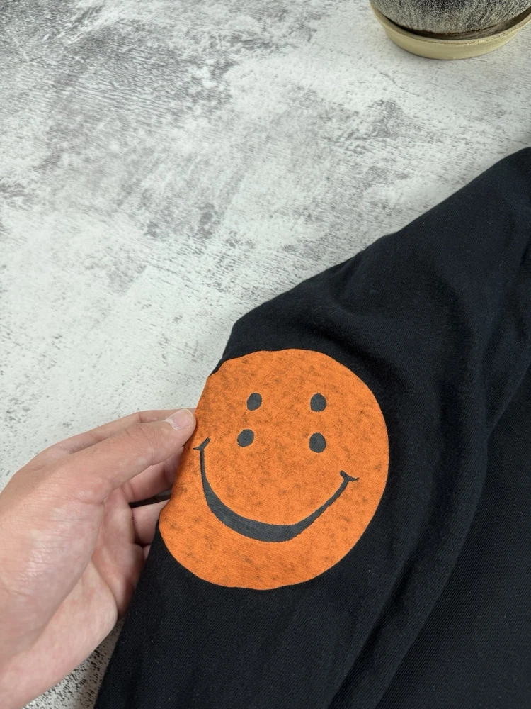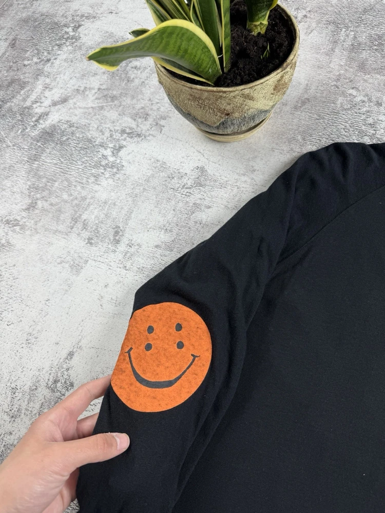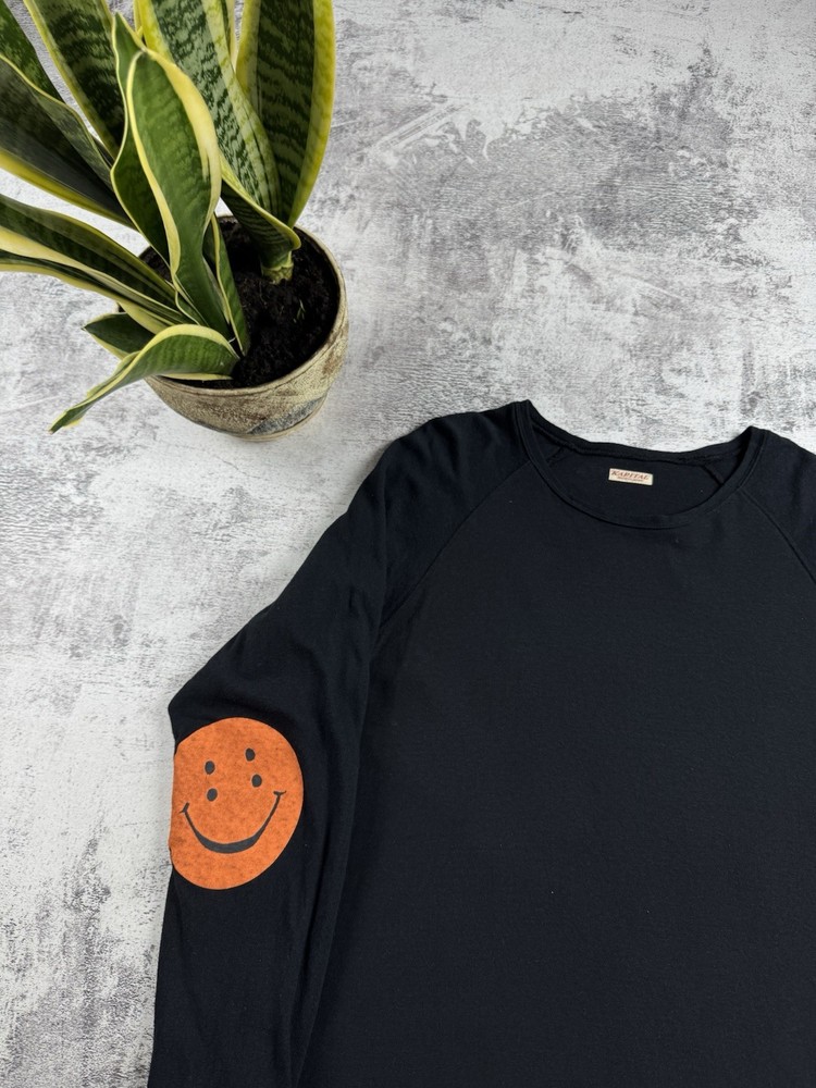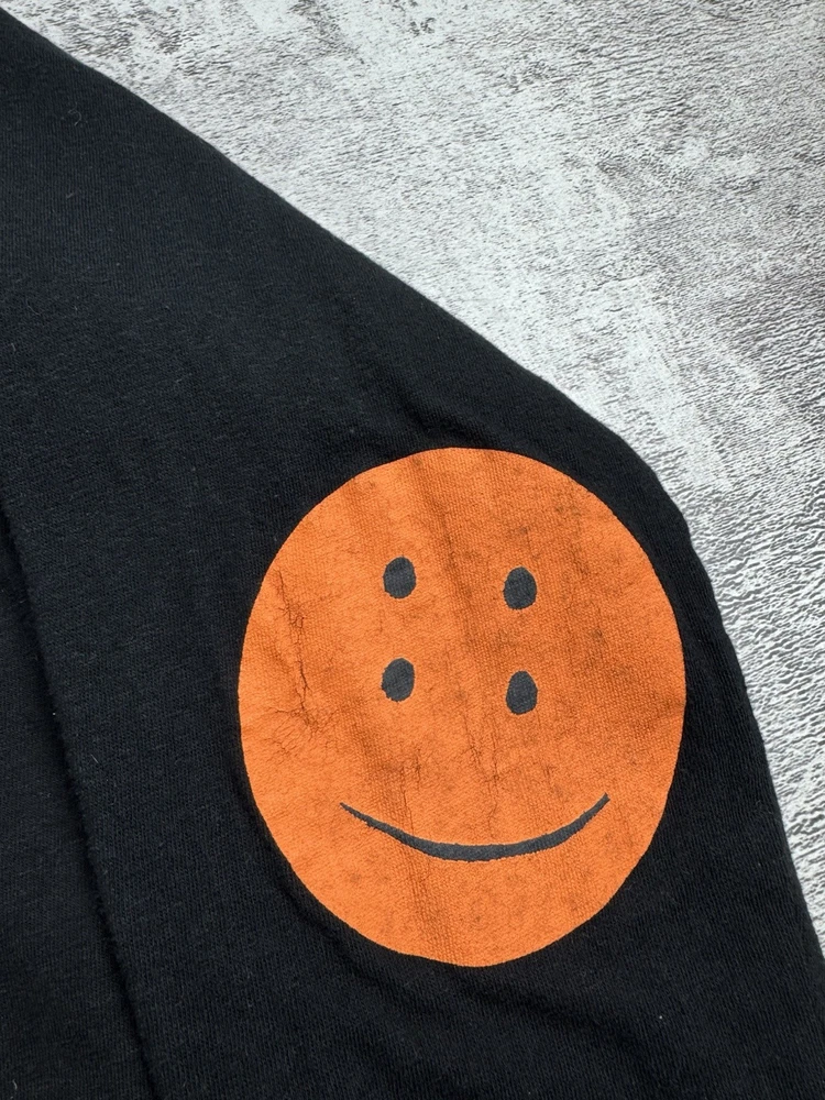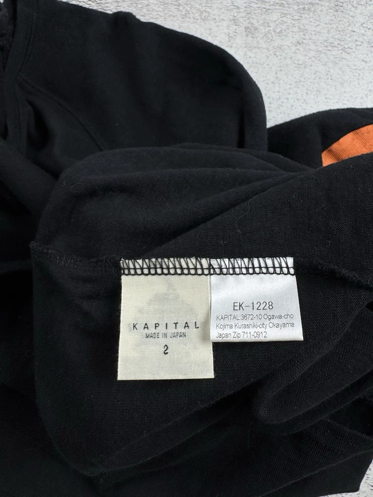 This KAPITAL Smiley Patch x Gauze Tenjiku Chef Long-Sleeve Black Japan T Shirt Jersey is a limited edition piece that is perfect for any fan of Japanese streetwear. The shirt features a heart-shaped graphic print with a variety of characters from comics, cartoons, and movies such as Captain America, Mickey Mouse, and Iron Man. The shirt is made of cotton and has a crew neck and long sleeves. This T-shirt is machine washable and has a regular fit. It is available in size L and is suitable for all seasons. The shirt has a variety of features such as crochet, lightweight, and quick dry. It also has a vintage look and feel, with a canvas fabric type and a stylish designer hip hop theme. This shirt is perfect for anyone who loves to showcase their love for comics, cartoons, and movies while staying comfortable and stylish.