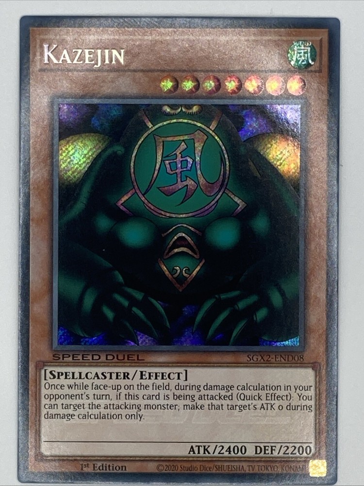 Unleash the power of wind with the Kazejin card from the Speed Duel GX: Midterm Paradox set. As a Secret Rare card numbered SGX2-END08, it's a must-have for any serious collector or player. Its Effect type card showcases strategic depth, perfect for those looking to gain an edge in their next duel. With an attack power of 2400 and a defense strength of 2200, this Spellcaster creature/monster type card is a formidable addition to any deck. Printed in English and manufactured by Konami, the Kazejin card is a 1st Edition gem suitable for players aged 6 and above, ready to make a significant impact in your next gaming session. Thank you for viewing our Yu-Gi-Oh cards on eBay! This card has come straight from the booster pack straight to a penny sleeve. If you have any questions or issues, please do not hesitate to reach out to us! We will do everything we can to assist you! Thank You!