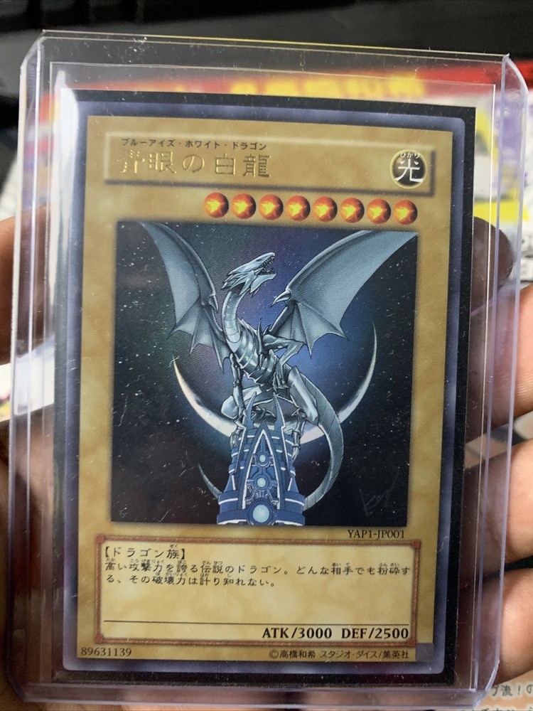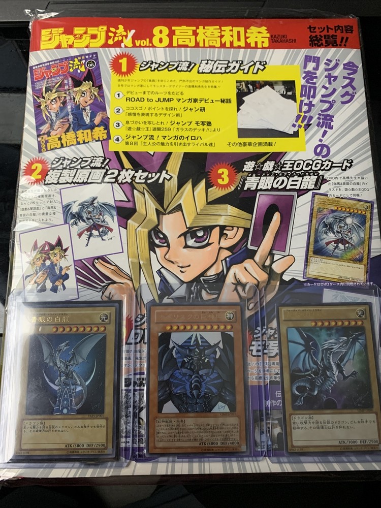 Kazuki Takahashi Signature Seto Kaiba Collection & Rare Sealed Blue Eyes Artwork. Super rare Japanese Yugioh magazine, never opened before. Contains rare footage of Kazuki Takashi alternative Blue Eyes White Dragon artwork & the blue eyes card inside the magazine. All cards have Kazuki Takashi printed signature on the bottom. This collection contains the following: 2 Mint Blue Eyes White Dragons alternative art by Takashi 1 obelisk the tormentor alternative art by Takashi 1 new Blue Eyes White Dragon & Seto Kaiba alternative art by Takashi (inside the magazine) 1 Super Rare DVD of Kazuki Takashi explaining his artwork, Japan exclusive.
