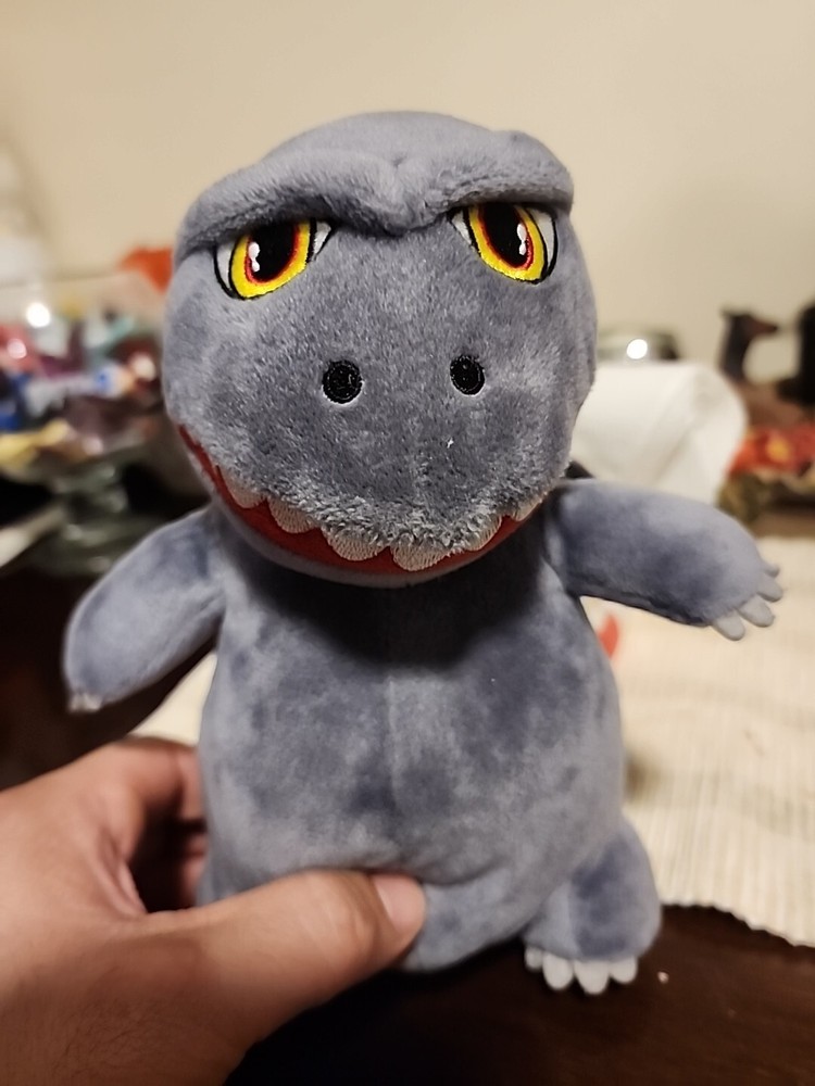 This adorable Godzilla plush is a must-have for little monster fans! The soft, huggable design is perfect for tiny hands, and the playful expression brings the iconic character to life. Despite being pre-loved, it's in fantastic shape with no visible wear - clearly well cared for. My 4-year-old hasn't put it down since it arrived! The 8-inch size makes it ideal for cuddling during naptime or adventures. A super fun collectible that's durable enough for daily play while still looking great on display.