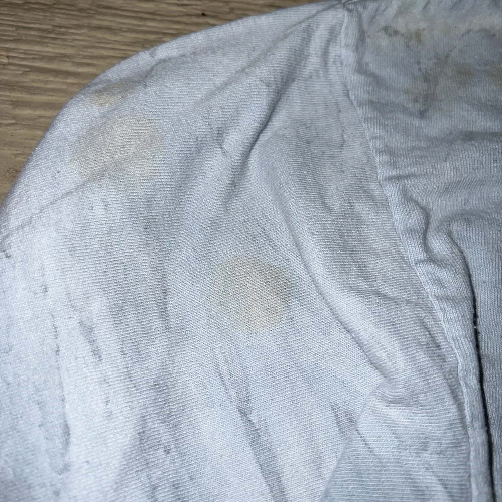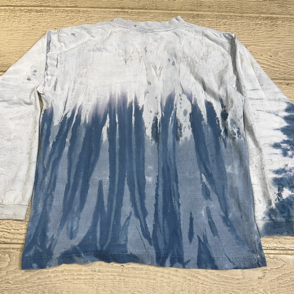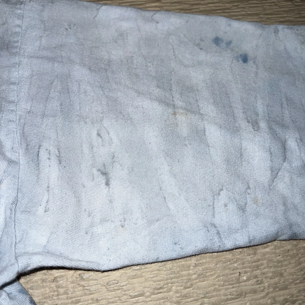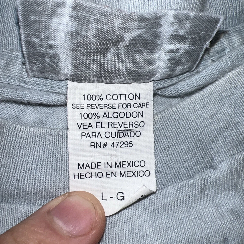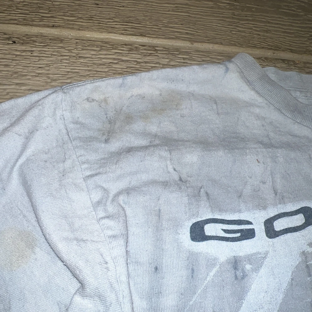 Measurements are in photos for reference. Needs a bleach bath, has yellow stains throughout the sleeves and cracking on the graphic. Up for sale is an iconic piece of vintage apparel that will make any Godzilla fan's heart soar. This shirt features a classic movie promo graphic and is made from comfortable cotton material. The crew neck and long sleeves make it a versatile choice for any season and the blue color adds a pop of fun to any outfit. The shirt is available in a Kids Large size or can fit an Adult Small, with a regular fit that is suitable for any body type. It was manufactured in Mexico during the 1990s and has a fun 90s theme. This shirt is perfect for collectors or anyone looking to add a touch of nostalgia to their wardrobe.