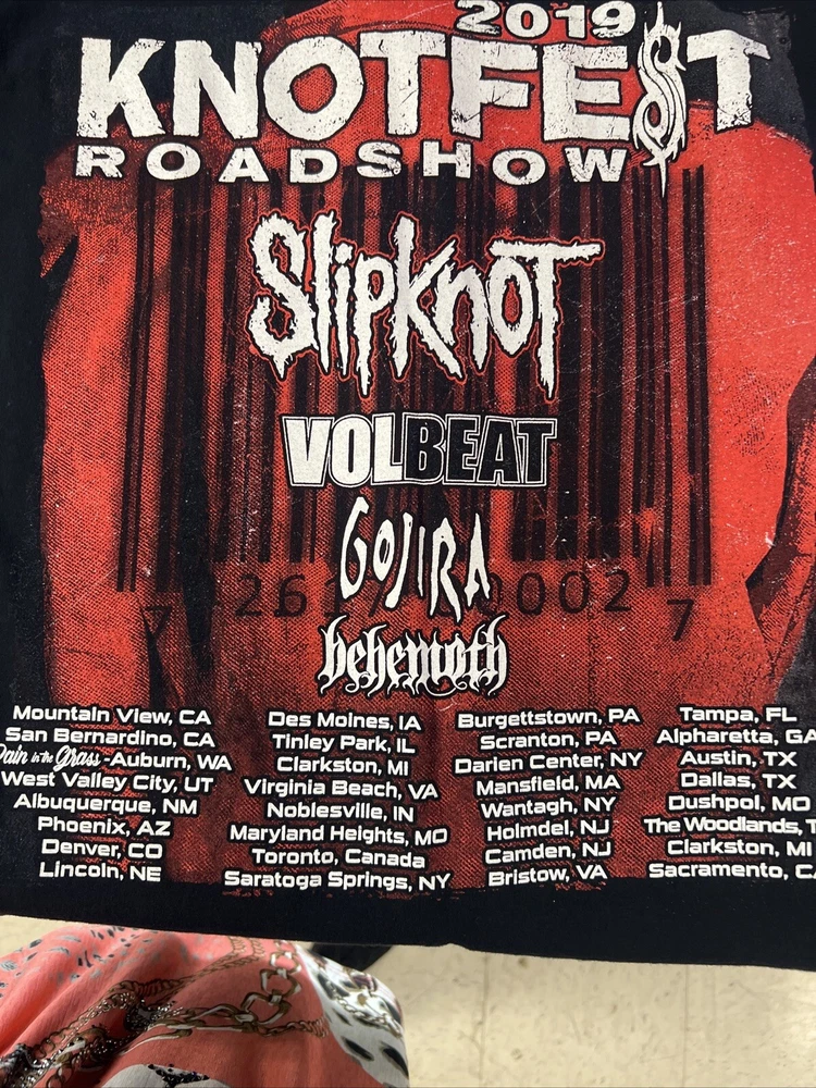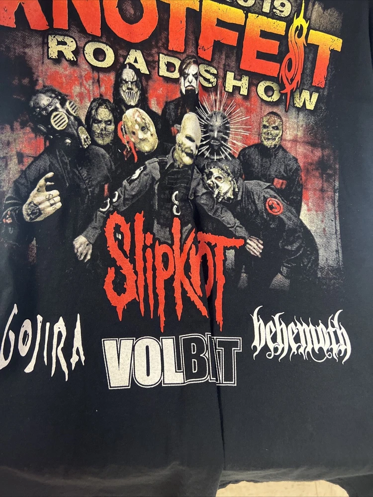 Knotfest 2019 Tour T Shirt Slipknot Gojira Volbeat Behemoth Size L. Condition is Pre-owned. Shipped with USPS Ground Advantage....