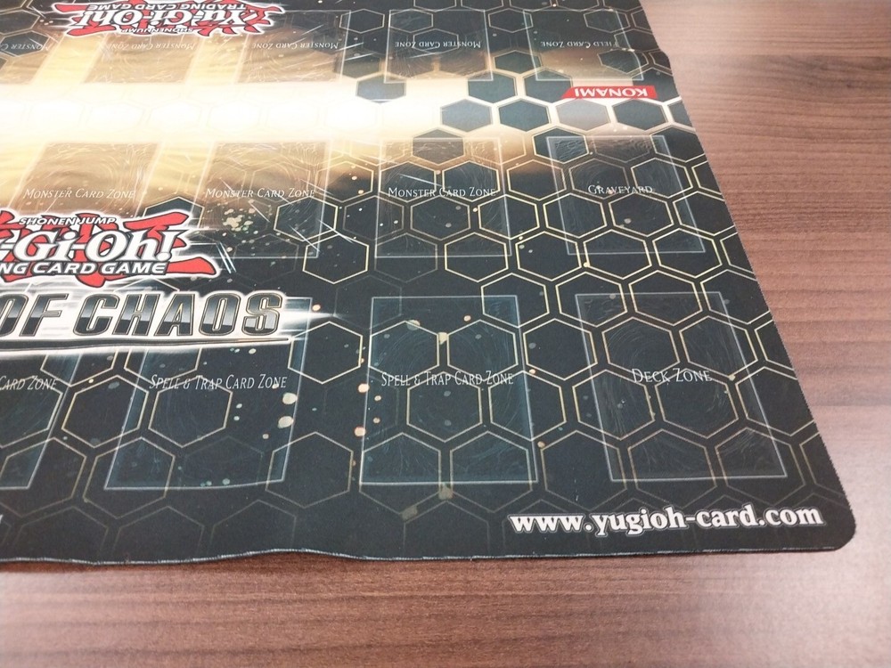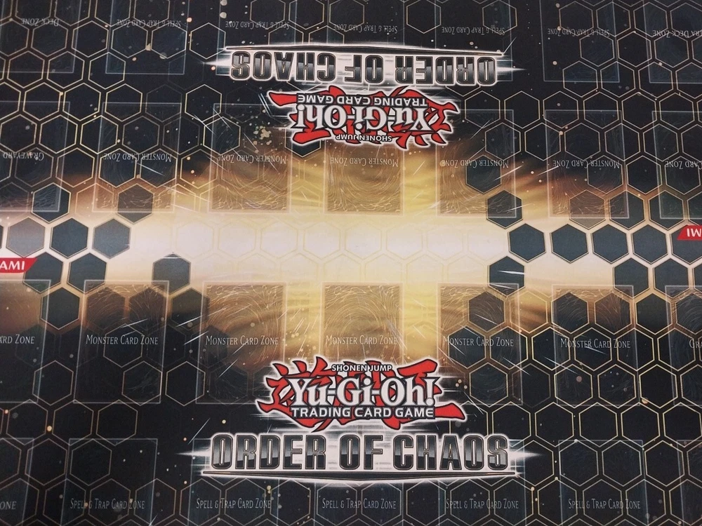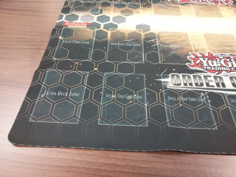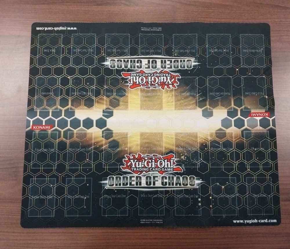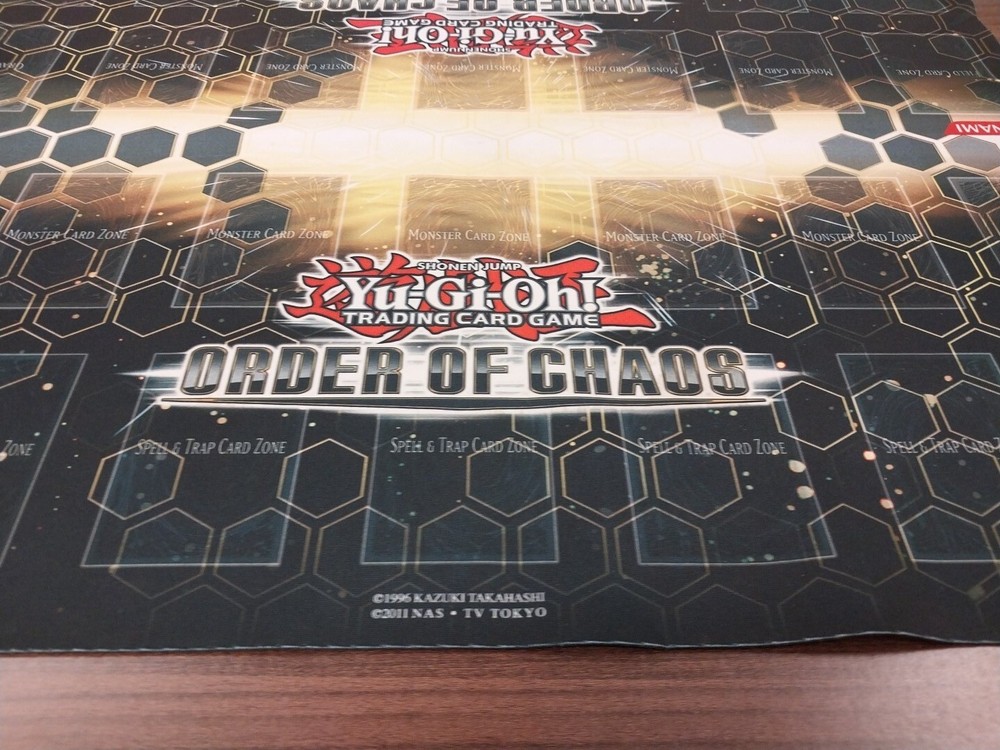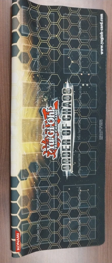 Konami YuGiOh 5Ds Two Player Order of Chaos Sneak Peek Playmat Good Shape!. Playmat doesn't have any writing on it and are no noticeable stains. There is a rip on the back rubber and minor bends on the edges but could probably be ironed out. Priced to sell and lots of photos to show condition. Sold as shown from the photos provided.