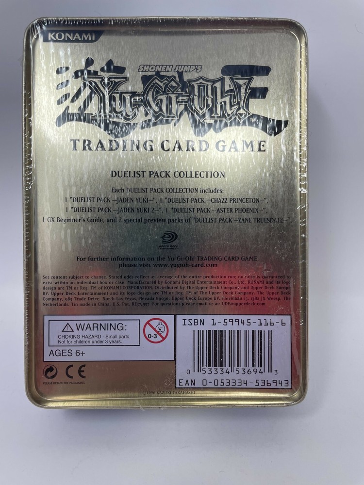 Each Gx Duelist Pack Collection Tin contains: • 1 Jaden Yuki 1 • 1 Jaden Yuki 2 • 1 Chazz Princeton • 1 Aster Phoenix • 2 Zane Truesdale...