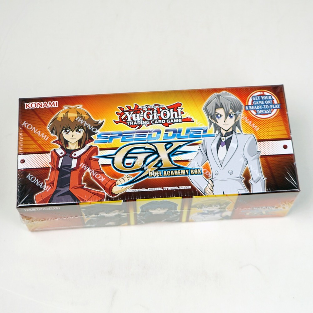 Brand new Konami Yu-Gi-Oh! Speed Duel GX Duel Academy Box As always, all product are in Stock and Ready to be shipped Click here for our other product Shipping & Handling Allow up to 3 business days for handling time. Your order will be shipped 3-5 business days of receiving cleared Payment. We ship within the continental 48 U.S states by USPS or UPS, ship to Alaska, Hawaii, Puerto-Rico, Guam, Virgin Island, APO/FPO/DPO addresses may take longer, please email us 1st before your purchase International buyer please check shipping from ebay shipping calculator. We only ship to Confirm address and we also reserve the right to cancel any order at any for any reason Orders over $100 will use signature Yuru Camp" is finally here on ReBirth! With everything you need to get started with ReBirth, you can start playing with this trial deck right away! A card with a luxurious stamped serial number is included very rarely! Luxury cards with serial numbers have numbers from 1 to 99. 99 cards in the world for each type of card! (2 types in total). There is only one card in the world with the same card and the same serial number. Get a card with your own number!! Neo standard construction category can build a deck only with card numbers including "YC". The Speed Duel GX: Duel Academy Box contains 8 pre-built Speed Duel Decks based on GX characters, intended to allow up to 8 players to play out of the box. Jaden Yuki: A 26-card 'Elemental HERO' Deck Aster Phoenix: A 22-card 'Destiny HERO' Deck Chazz Princeton: A 23-card 'Ojama' and Friends Deck Dr. Vellian Crowler: A 21-card 'Ancient Gear' Deck Alexis Rhodes: A 21-card Cyber Girl Deck Jesse Anderson: A 21-card 'Crystal Beast' Deck Zane Truesdale: A 23-card Cyber Style Deck Axel Brodie: A 20-card 'Volcanic' Deck Additionally, the box includes 23 additional Common cards and a pack containing 8 of 24 Secret Rare cards that are upgrades of the Common cards in the product.